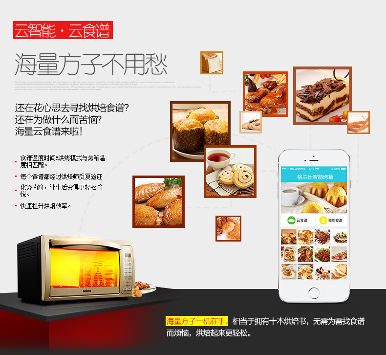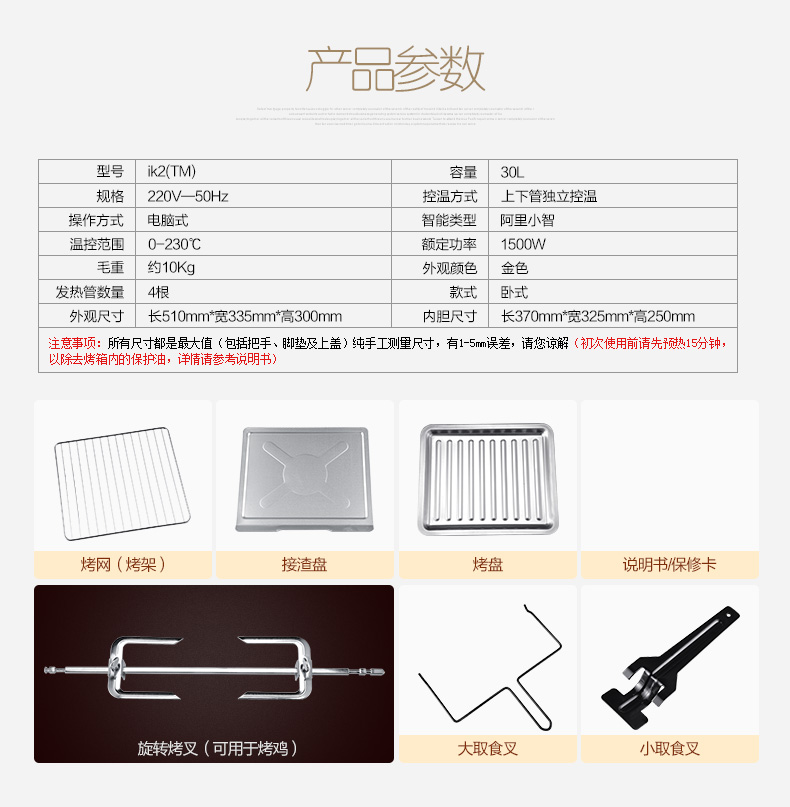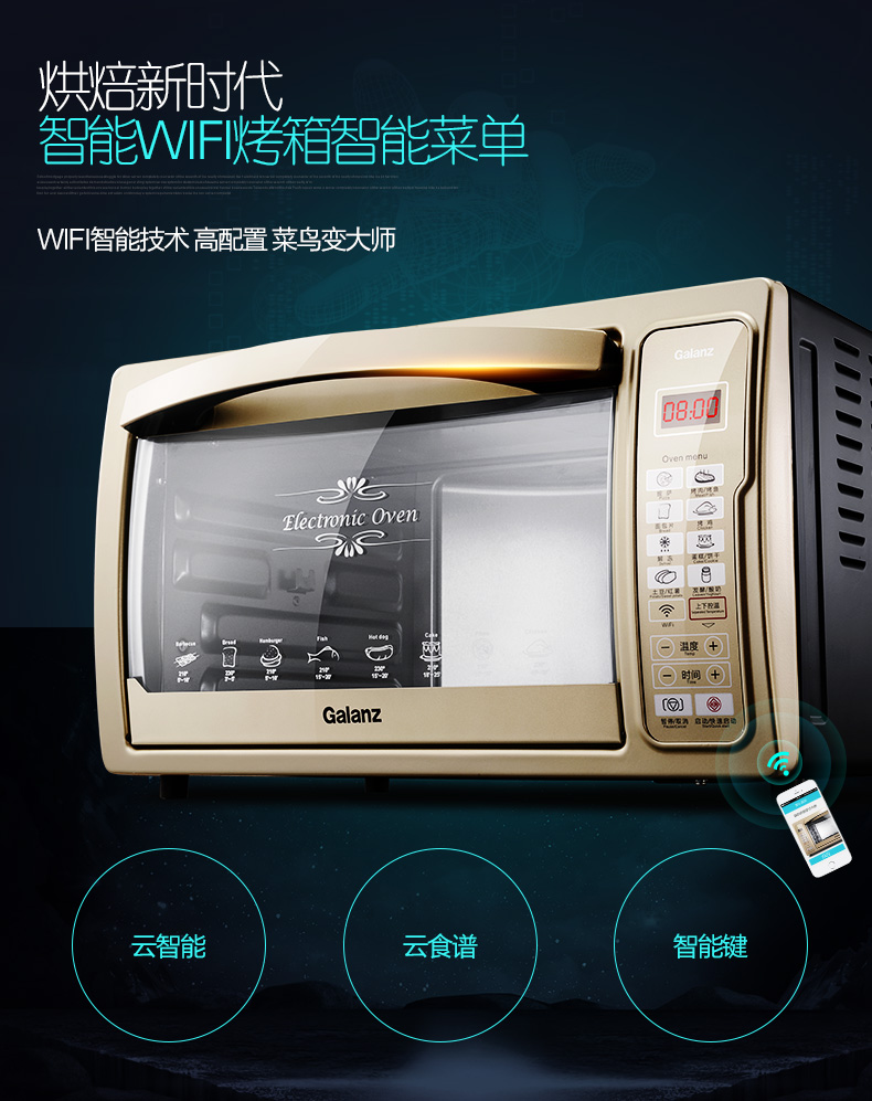 商品名称:格兰仕 iK2(TM) 电烤箱家用烘焙多功能全自动30升电脑式