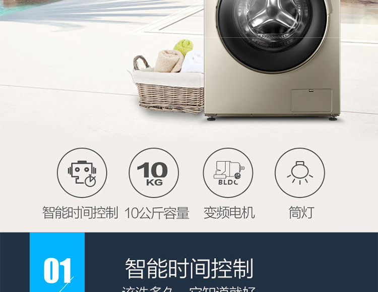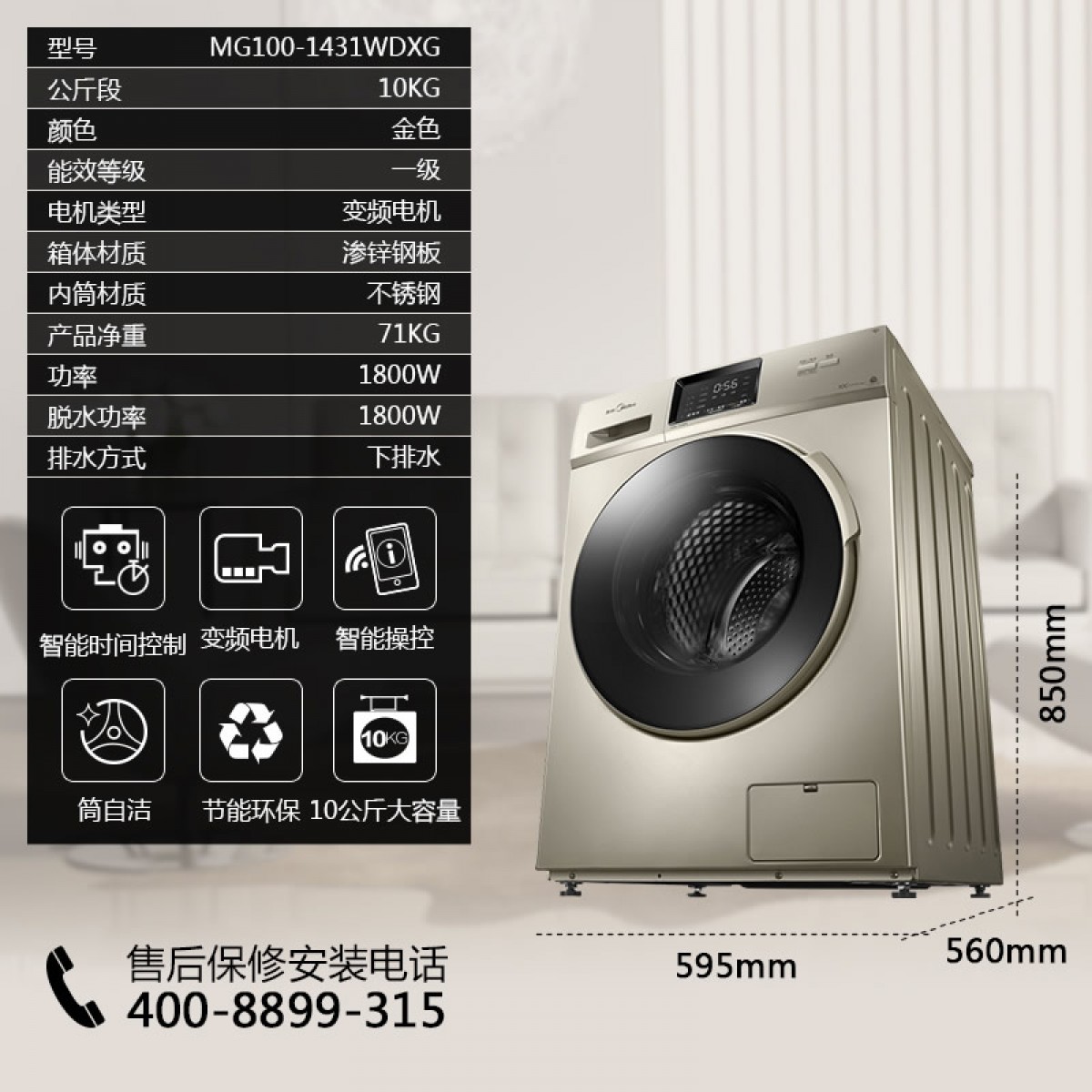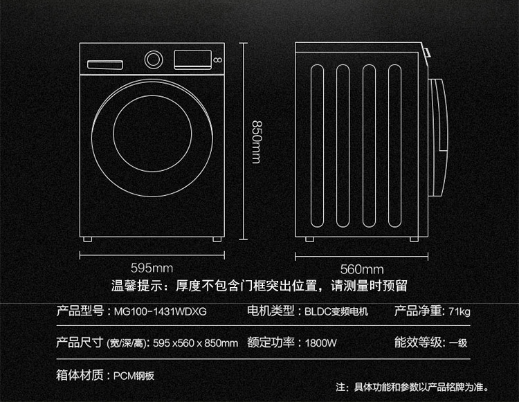 商品名称:美的 全自动洗衣机滚筒家用单甩大容量 MG100-1431WDXG