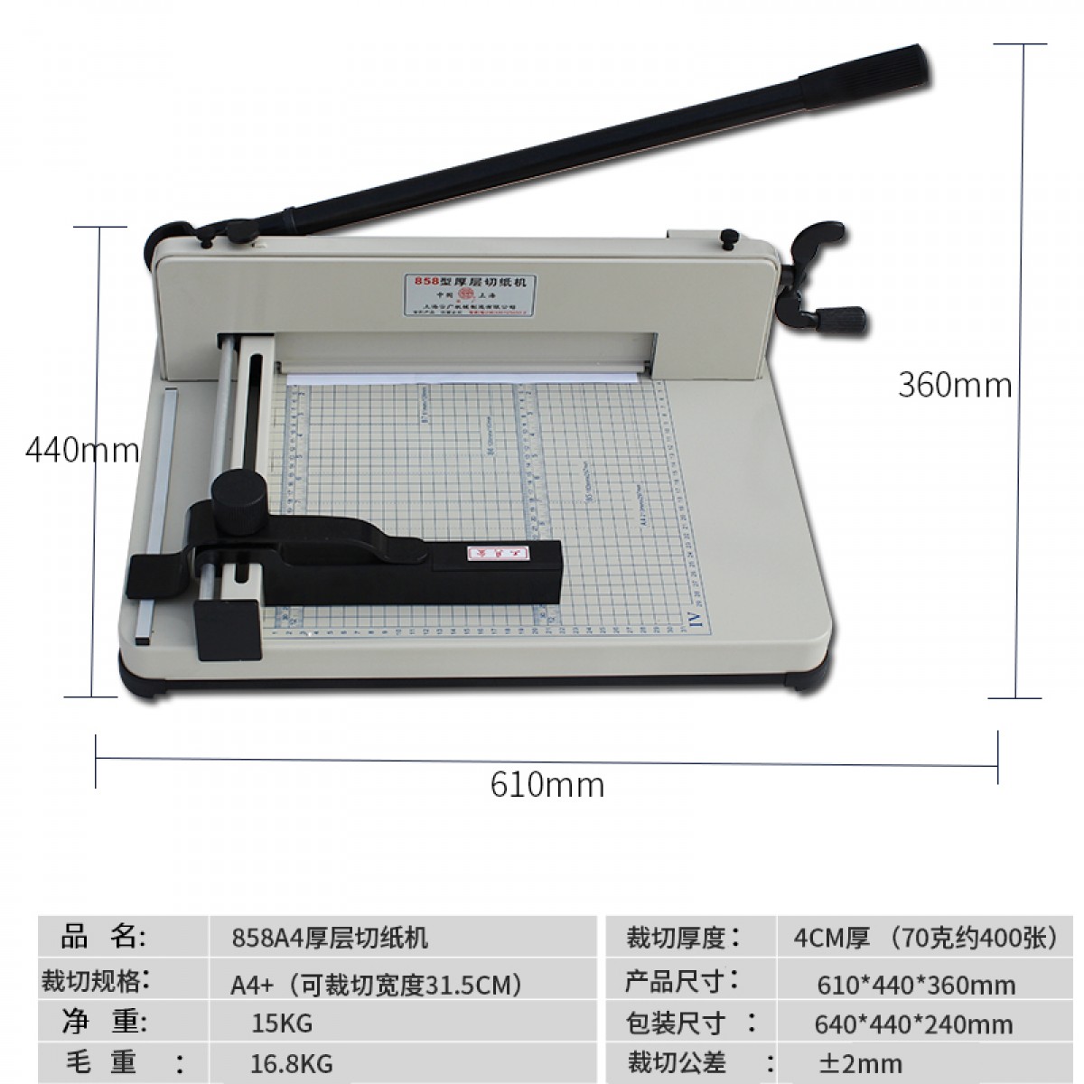 商品名称:云广 重型裁纸刀切纸机A4厚层切纸机手动 858