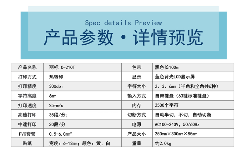 商品名称:丽标 线号打码机号码管打印机打号机 C-210T