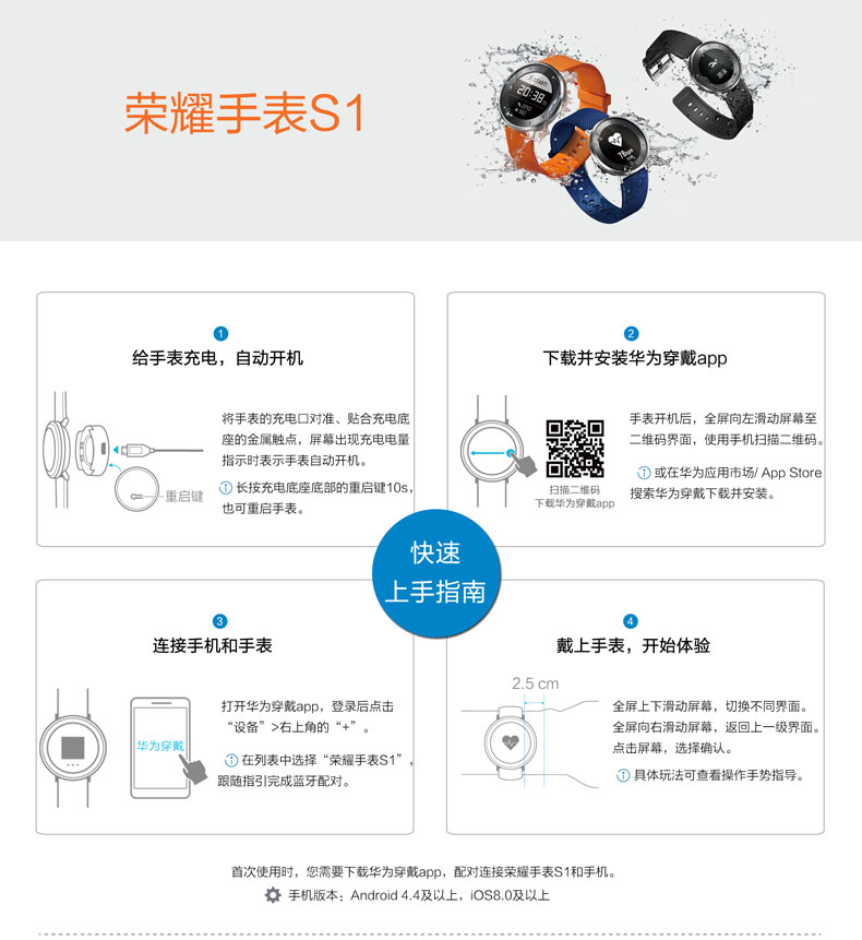 商品名称:荣耀 手表S1智能运动心率睡眠监测游泳防水支付手环