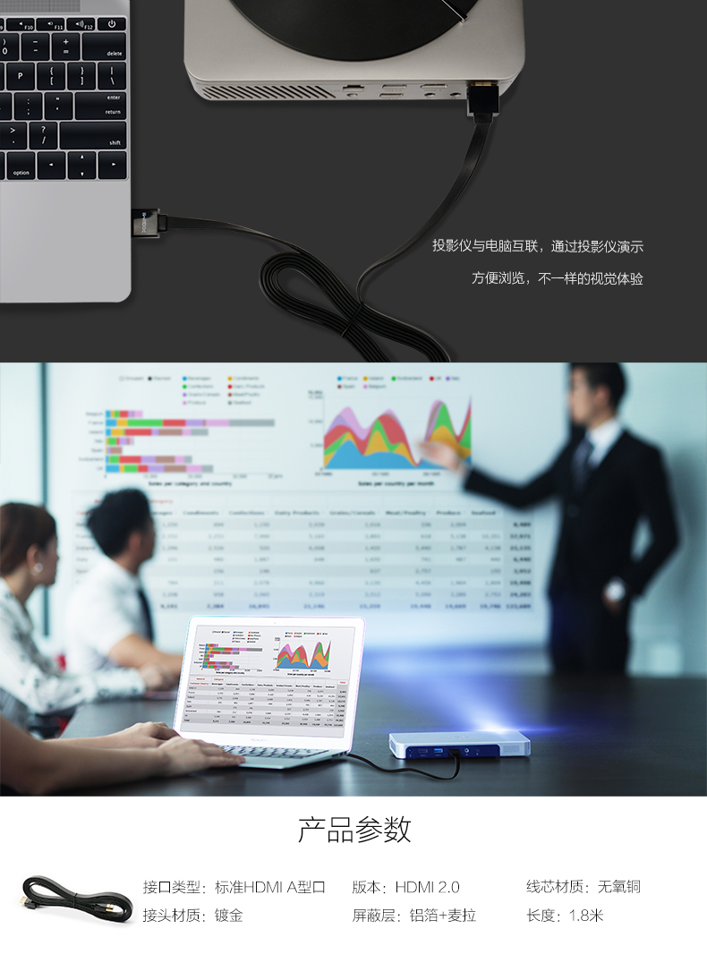 商品名称:GIMI/极米 1.8米HDMI2.0高清数据线
