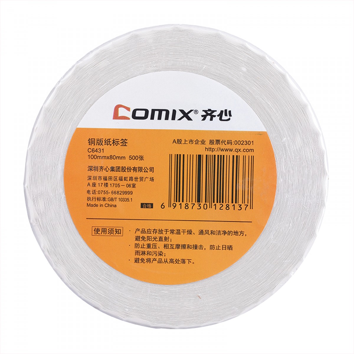 商品名称:齐心 C6431 不干胶标签打印机空白优质铜版标签纸条码贴纸打可移胶