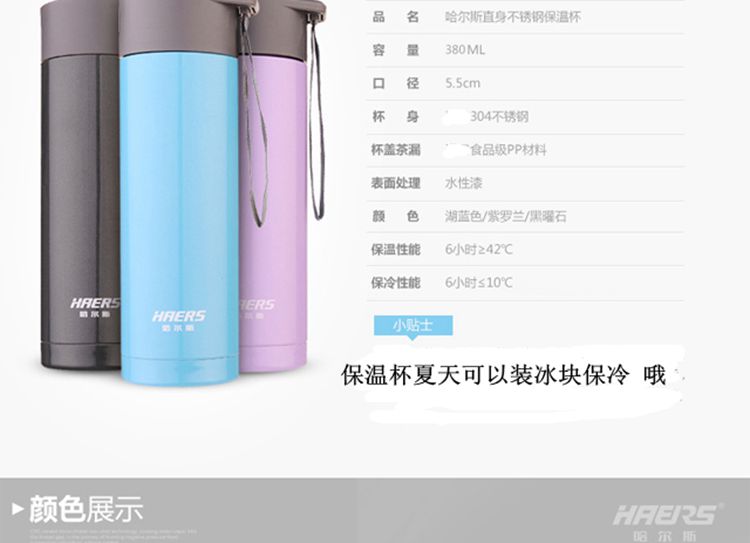 商品名称:哈尔斯 居家真空不锈钢保温杯创意便携女士提手茶杯大容量儿童水杯 LW-350-17