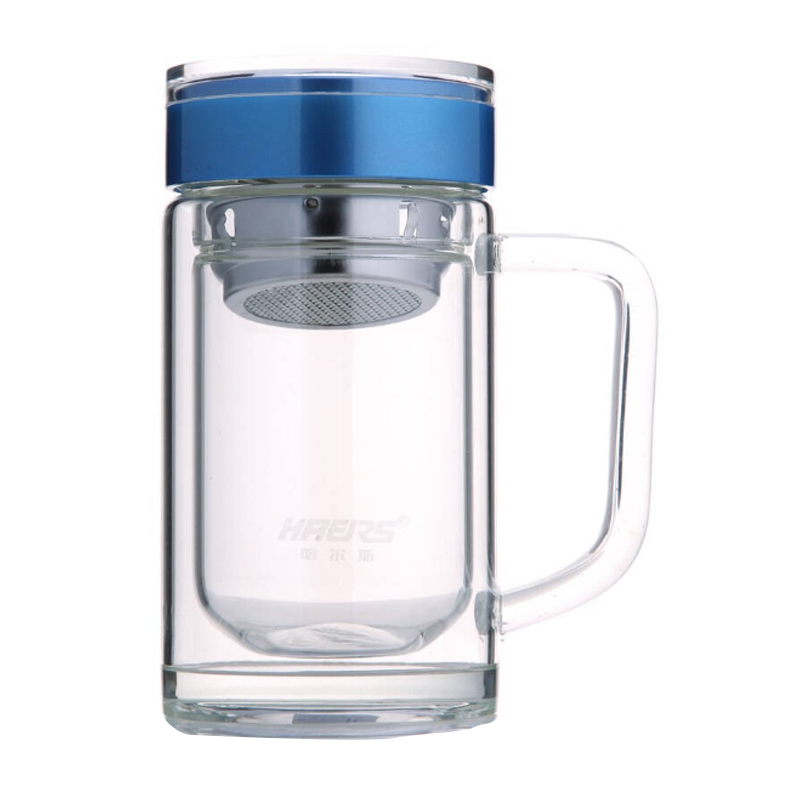商品名称:哈尔斯 玻璃杯 双层 带盖玻璃水杯水晶杯玻璃茶杯 办公杯 HCP-320-1