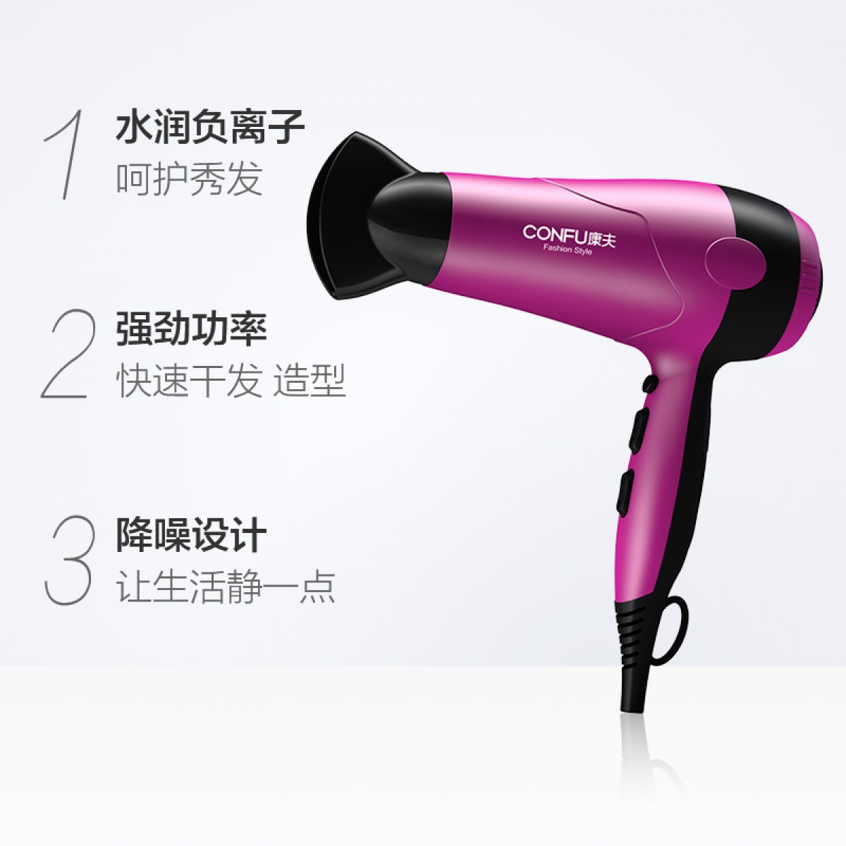 商品名称:康夫 电吹风机家用理发店大功率负离子冷热风学生宿舍不伤发KF3098