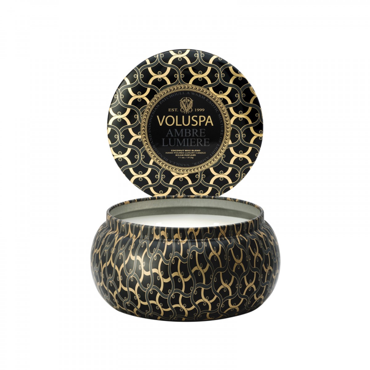 商品名称:VOLUSPA Noir黑色家居系列-金属 双烛芯装饰罐 香薰蜡烛
