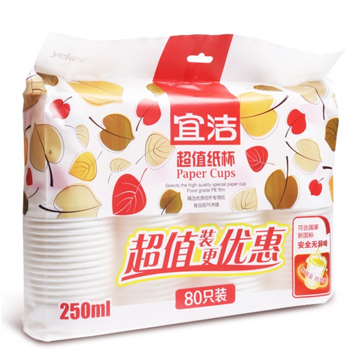 商品名称:宜洁 一次性纸杯子家用商务茶水杯办公婚庆纸杯250ml 80只/包