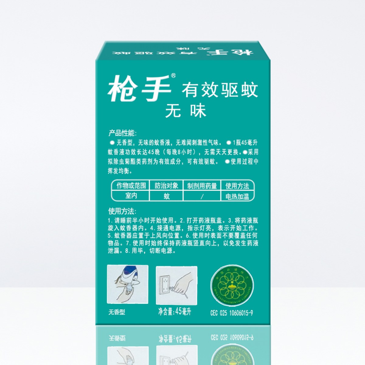商品名称:枪手 电热蚊香液 无味 45毫升 有效驱蚊45晚