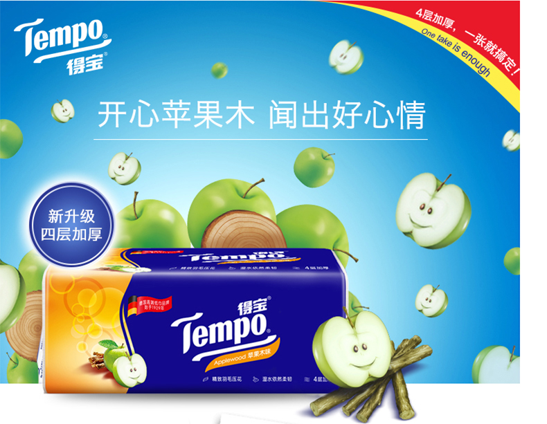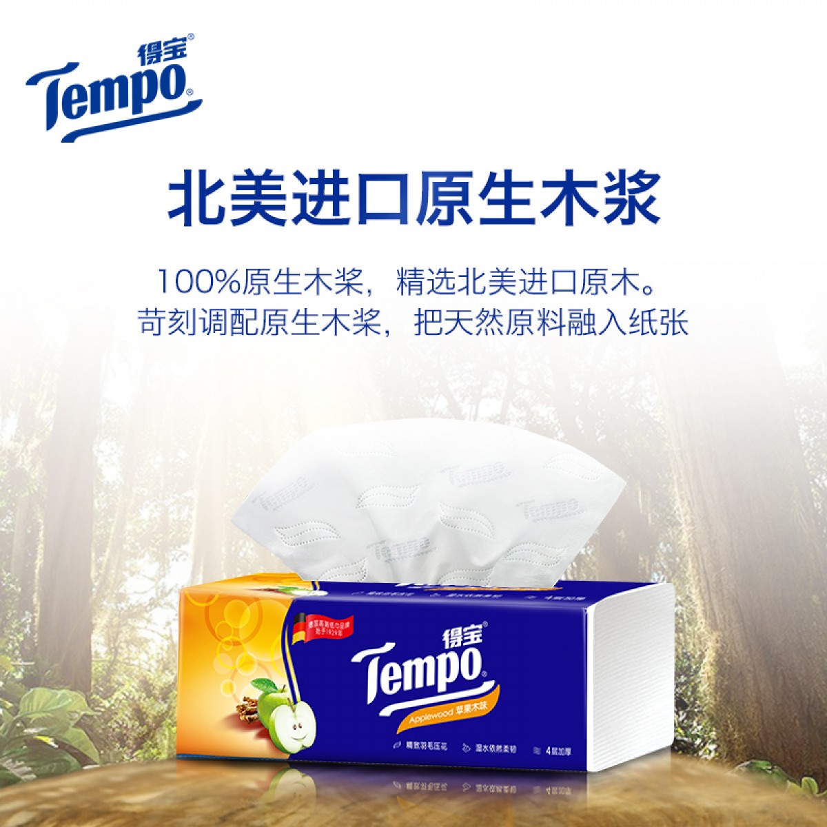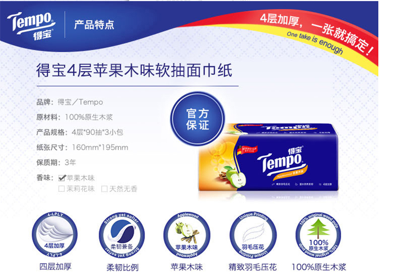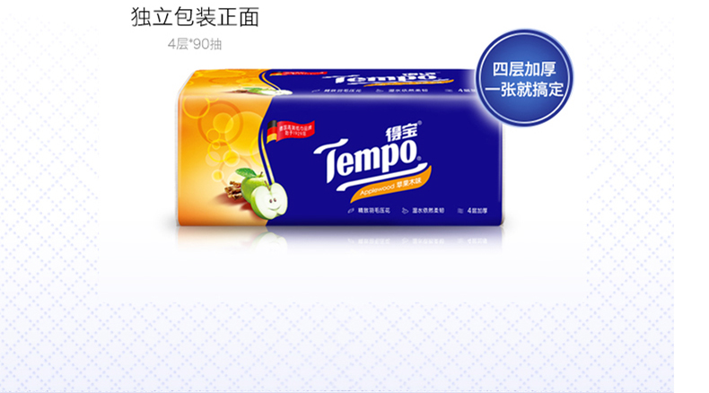 商品名称:得宝 纸巾抽纸 4层90抽12包纸抽抽纸巾苹果木味纸巾卫生纸