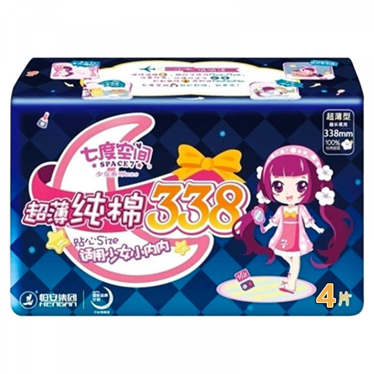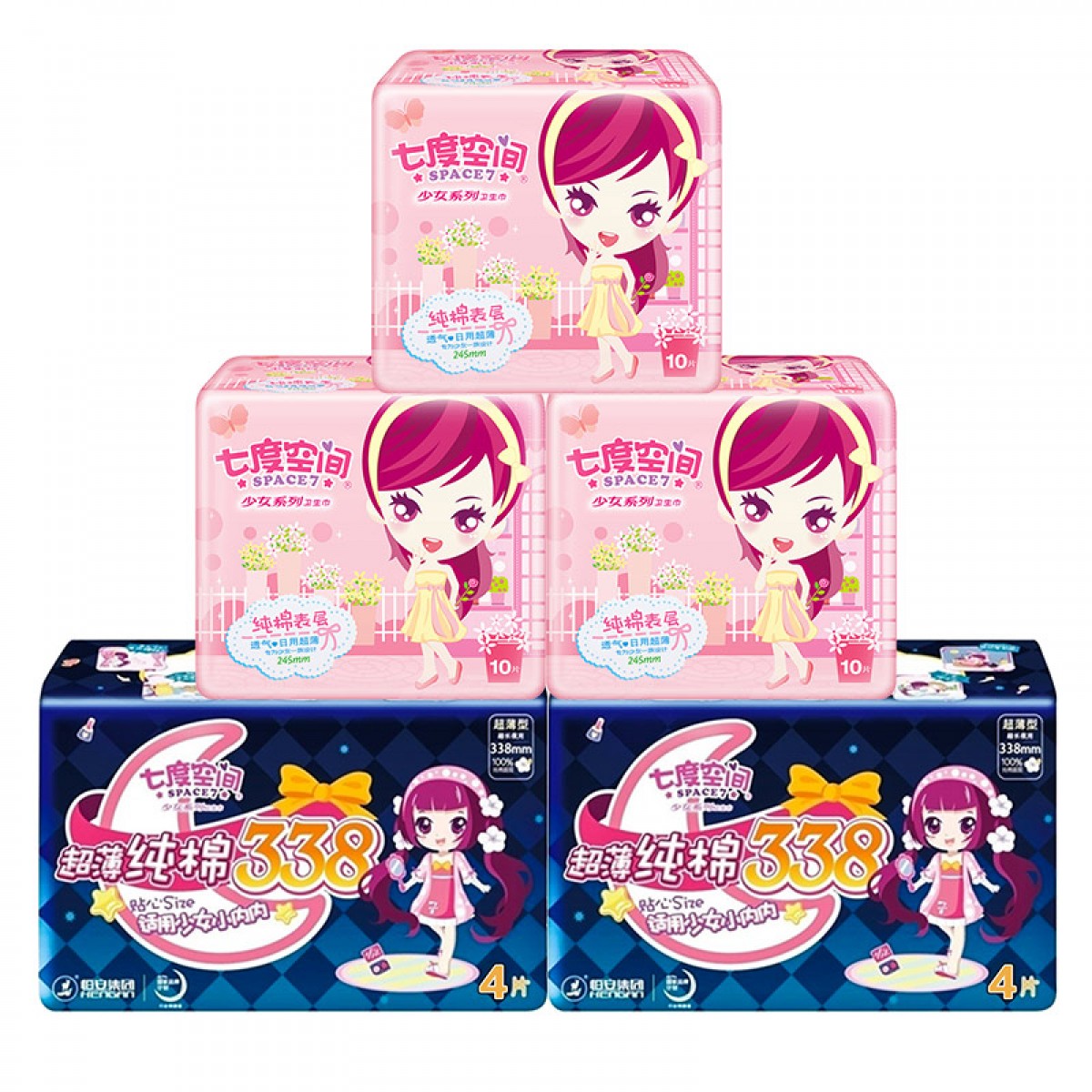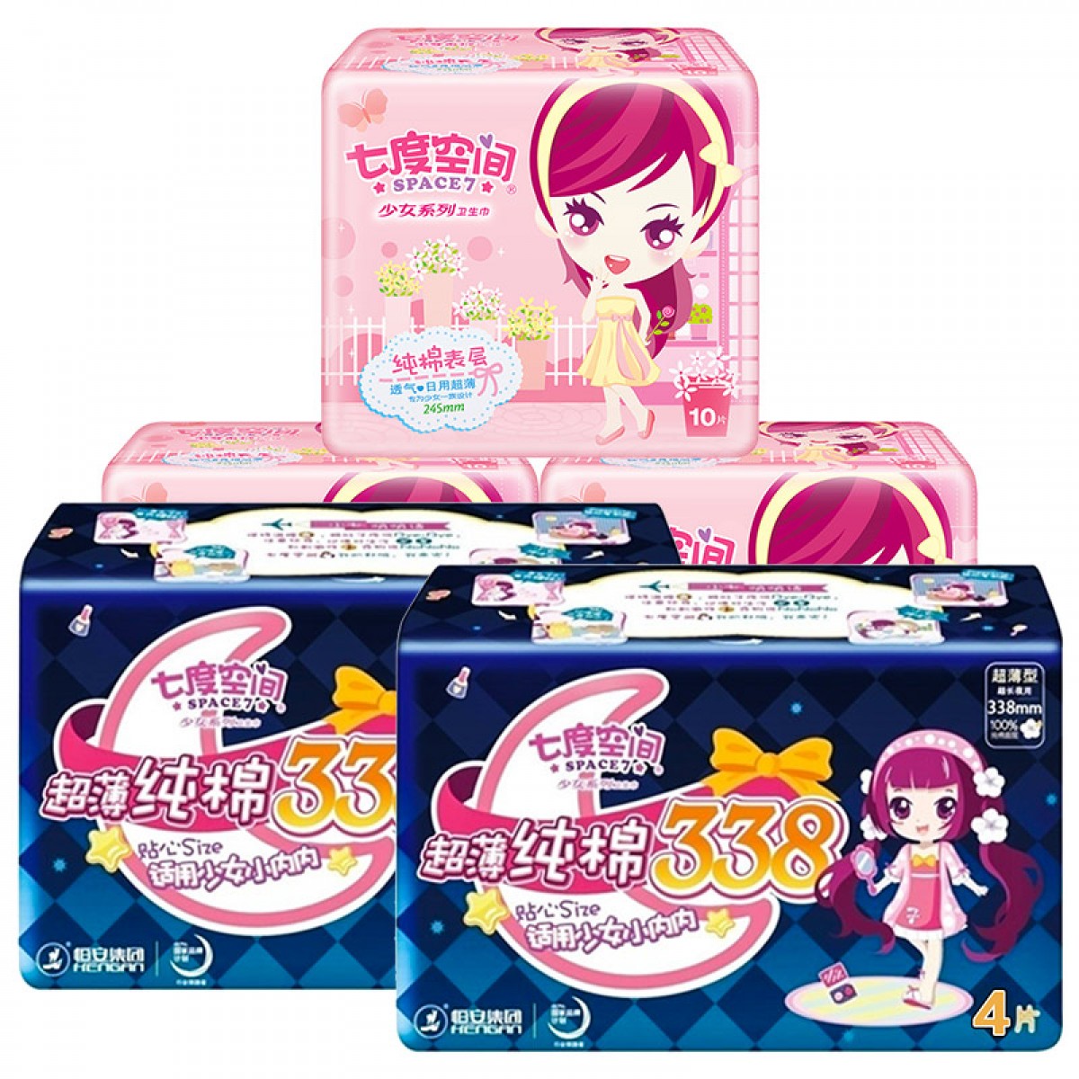 七度空间少女系列纯棉超薄日夜组合装245mm*3+338mm*2包共38片卫生巾