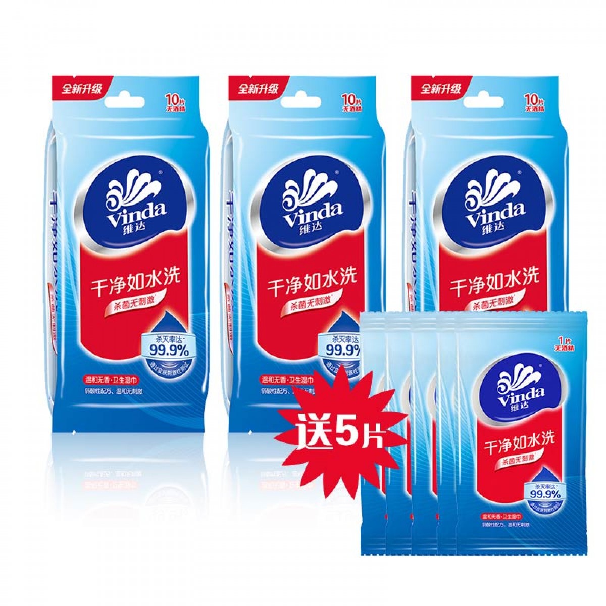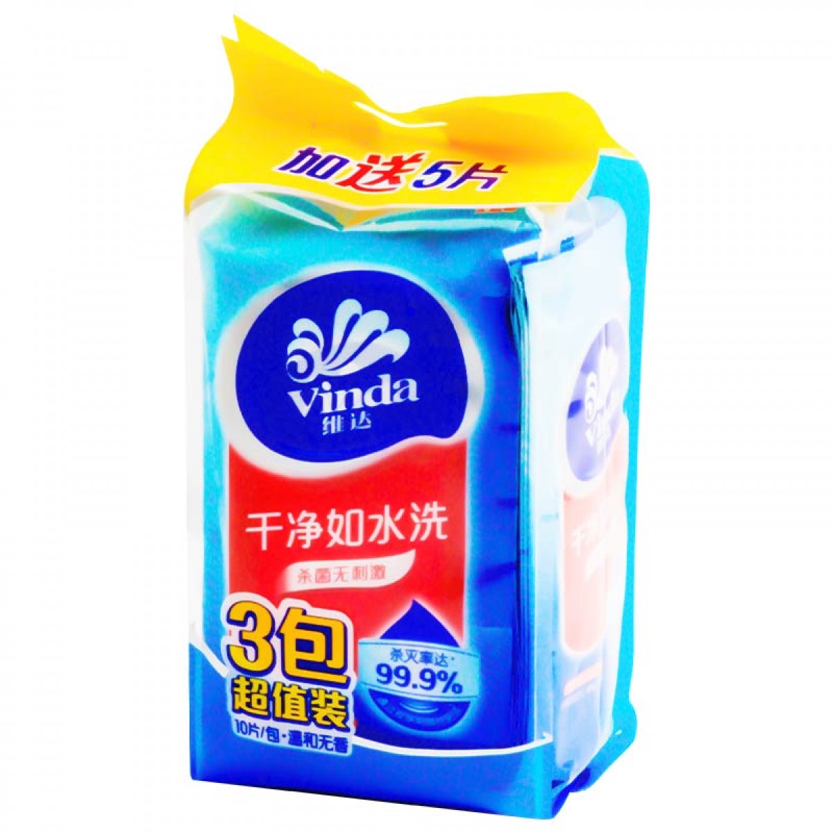 商品名称:维达 湿巾vw1020洁肤去菌独立量贩装3包* 10片/包+5片