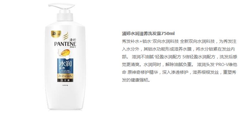 商品名称:潘婷 洗发水水润滋养750ml(洗发露 新老包装随机发送 )