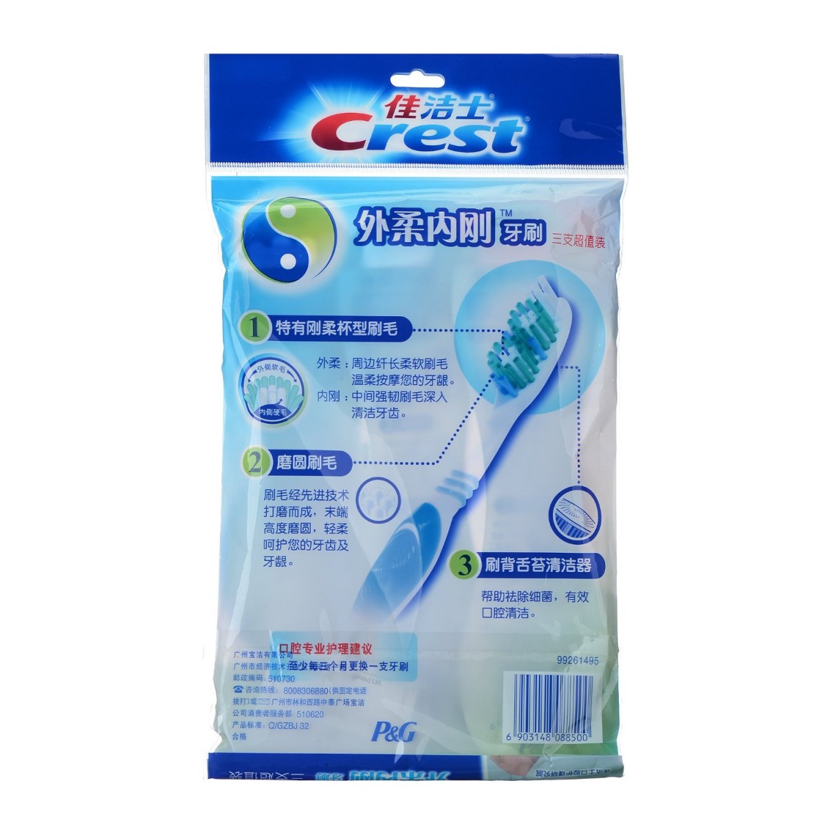 - 商品名称:佳洁士 外柔内刚软毛牙刷3支 crest内外软中毛二合一洁齿护龈