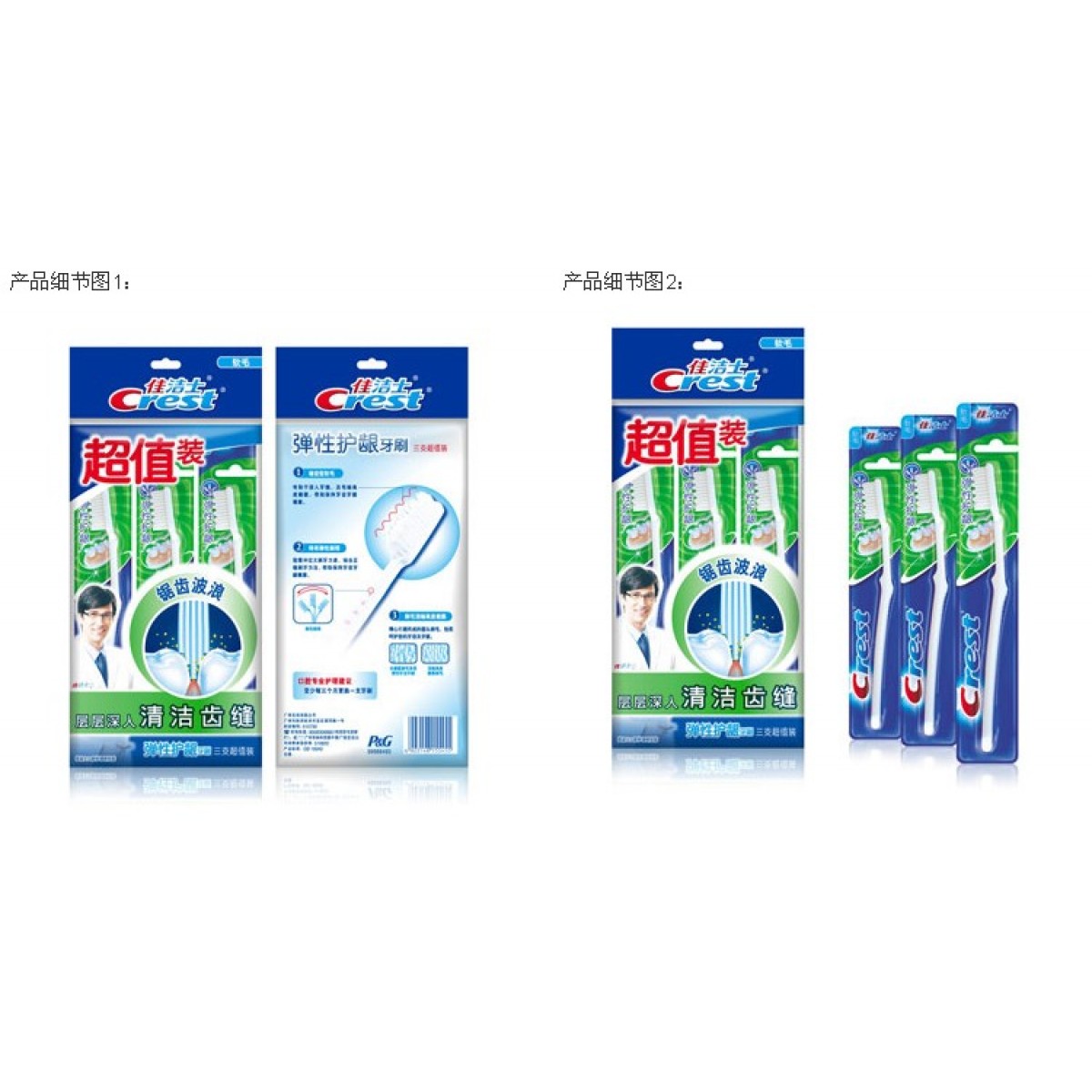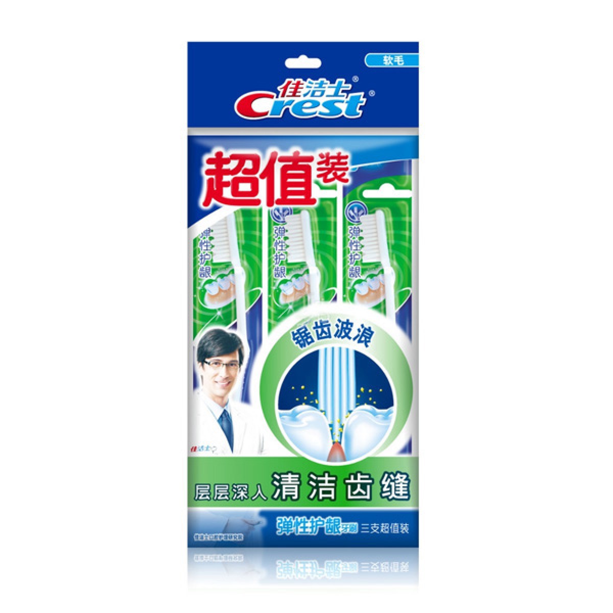 商品名称:佳洁士 弹性护龈牙刷中毛三支装 crest锯齿波浪弹性牙刷柄洁齿