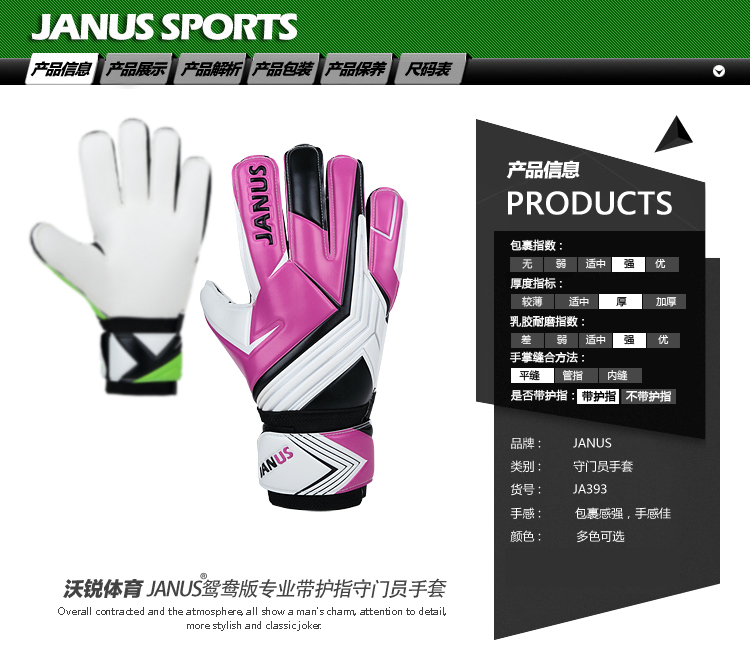 商品名称:JANUS 鸳鸯双色 加厚 专业带护指 足球守门员手套 门将手套 JA393