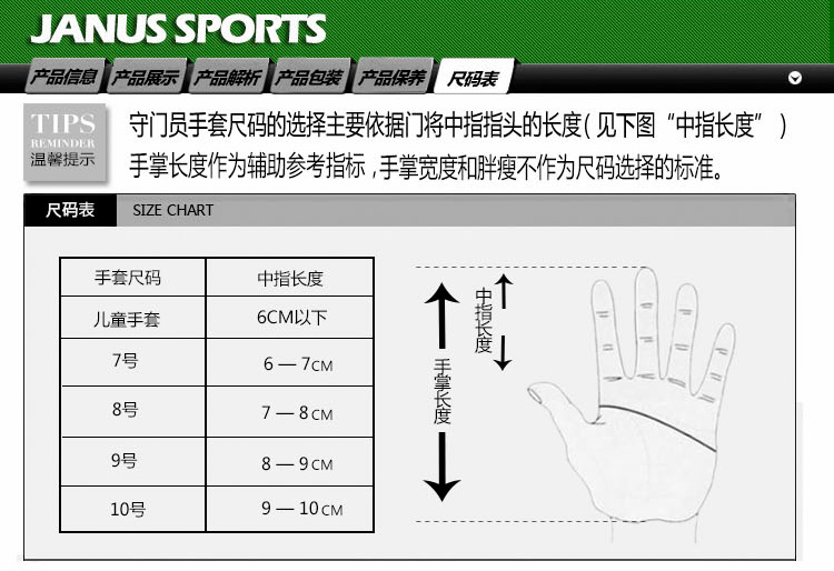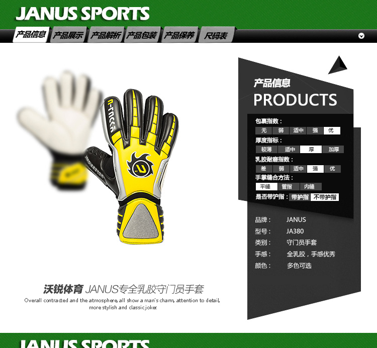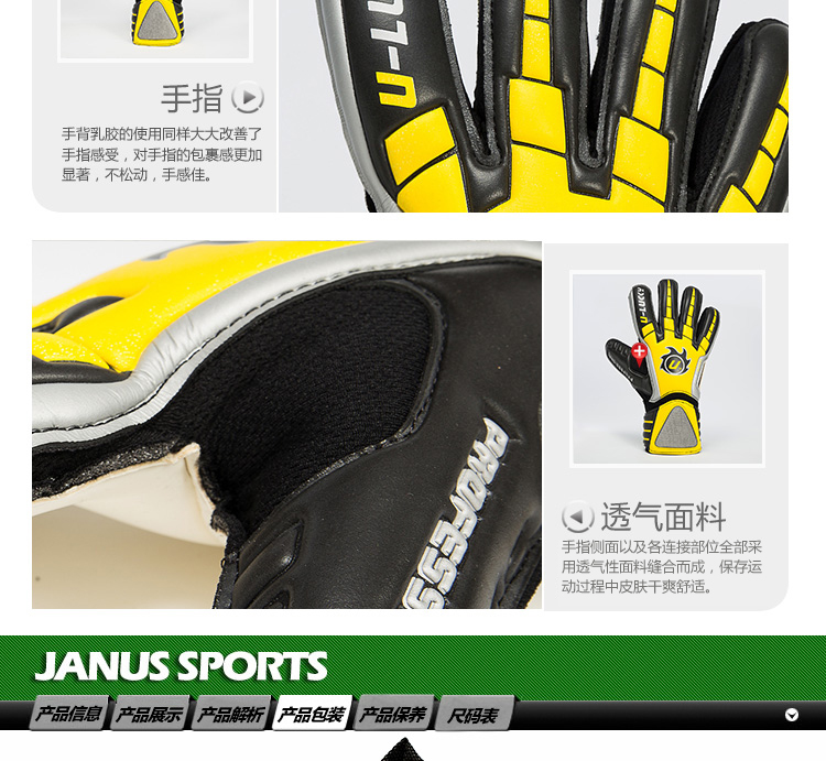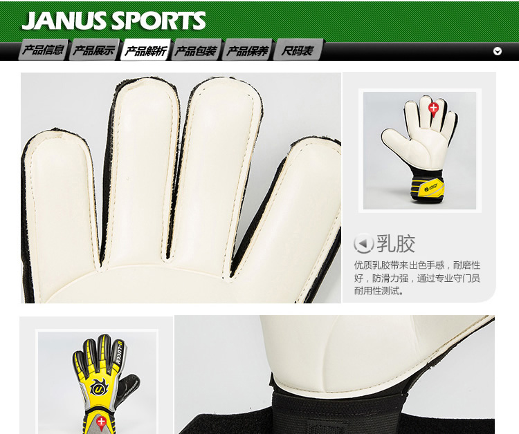 商品名称:JANUS 专业 全乳胶 足球守门员手套 门将手套 龙门手套 JA380