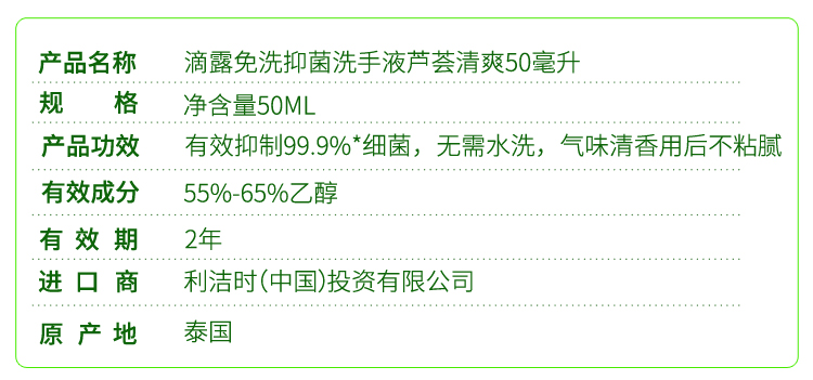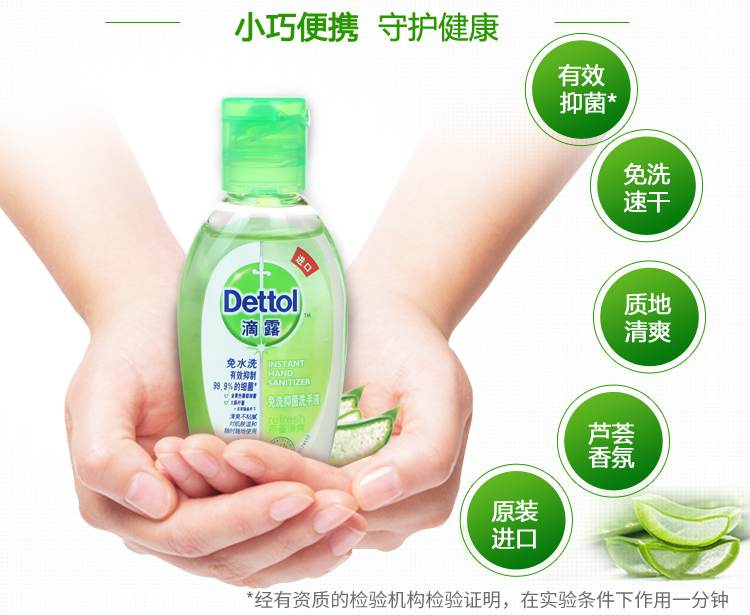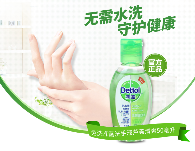 商品名称:滴露 免洗洗手液 芦荟清爽50ml 便携装 抑菌 方便