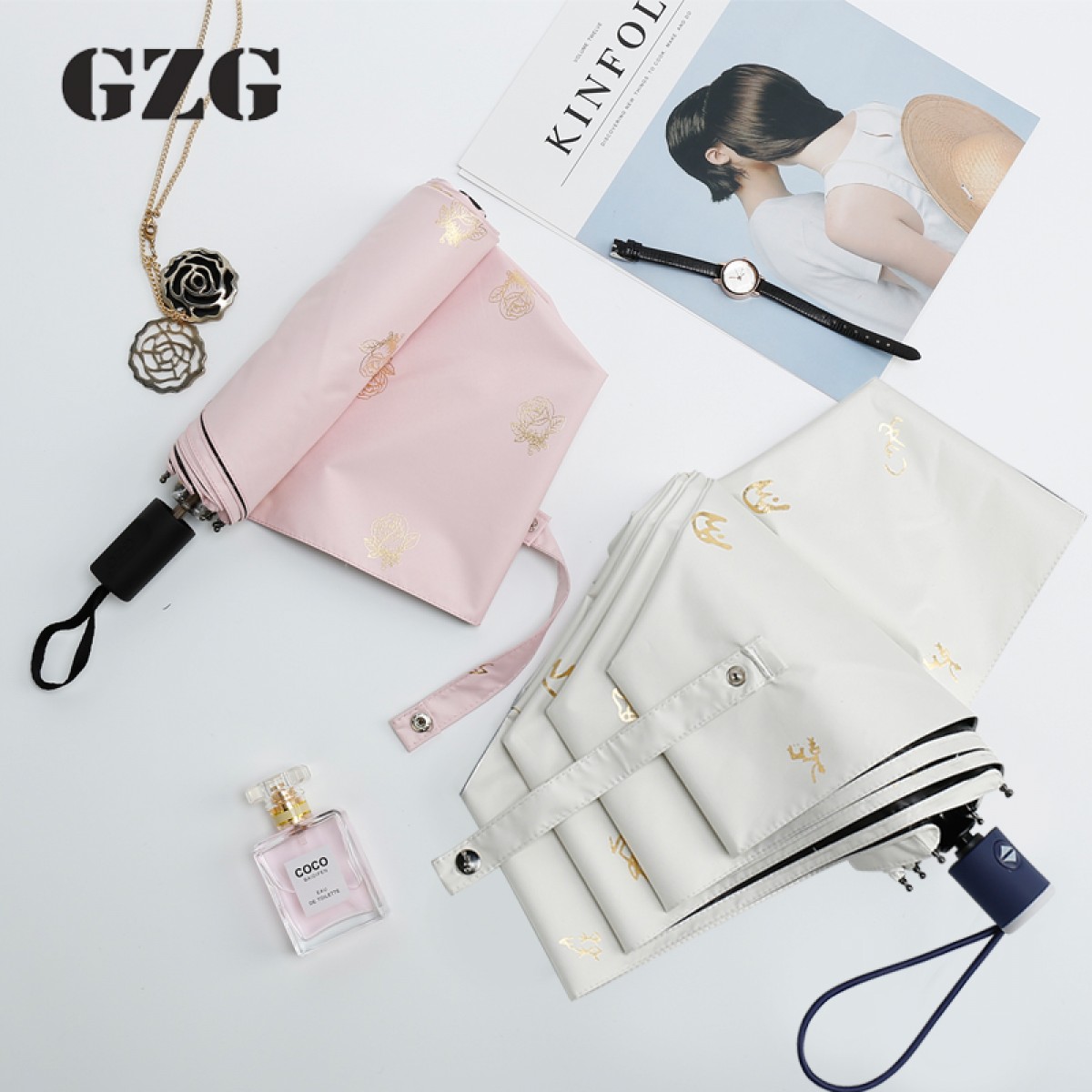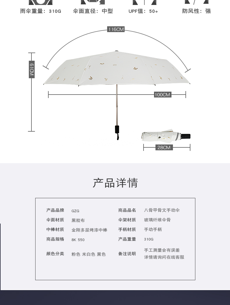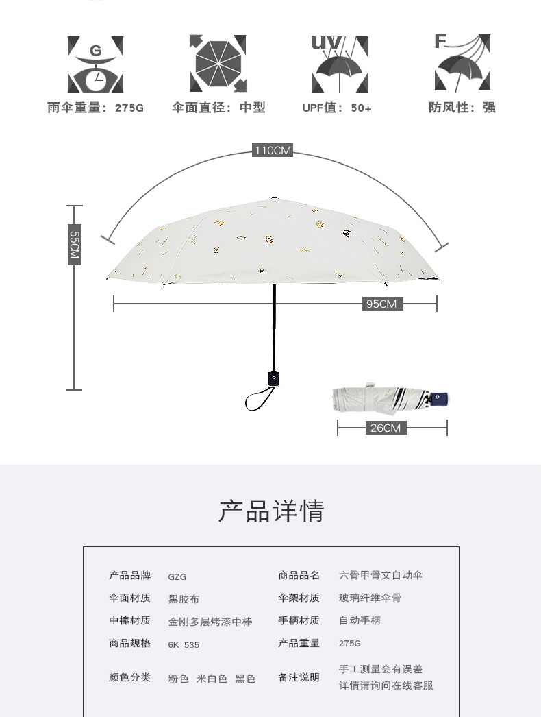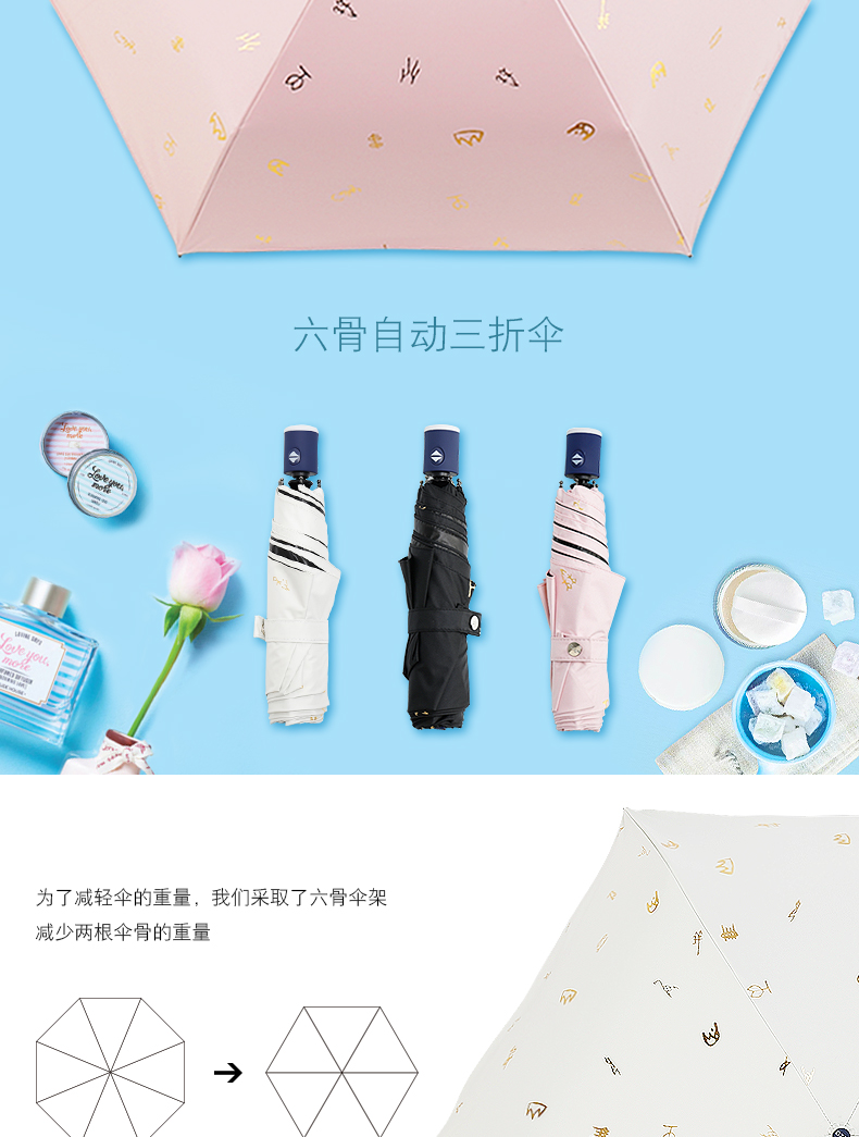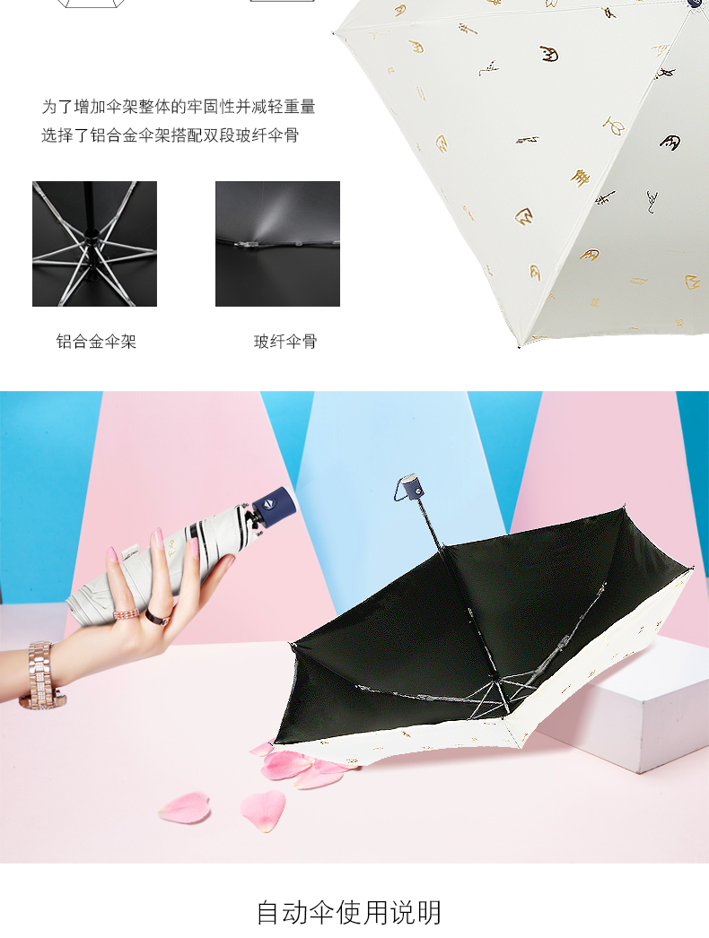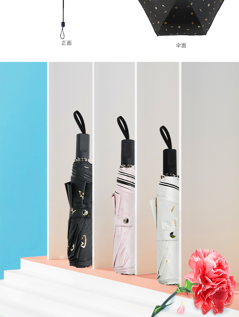 商品名称:GZG 黑胶全自动雨伞折叠防晒太阳伞女超轻小防紫外线遮阳伞晴雨伞