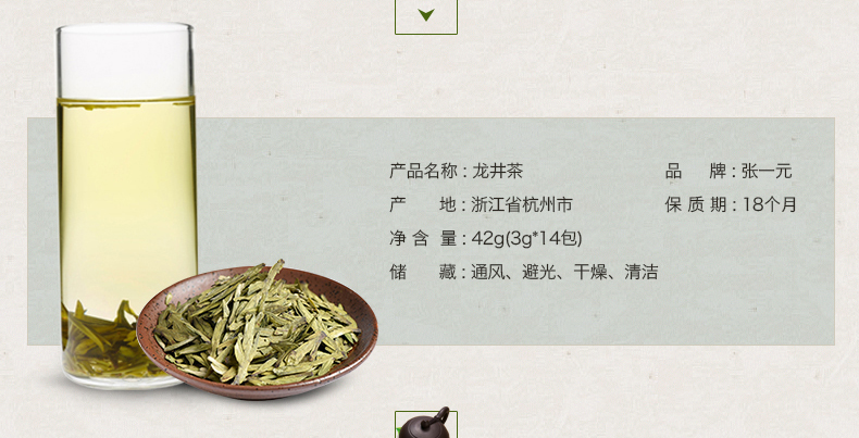 商品名称:张一元 茶叶 龙井茶 新茶春茶 罐装42g 尚品系列