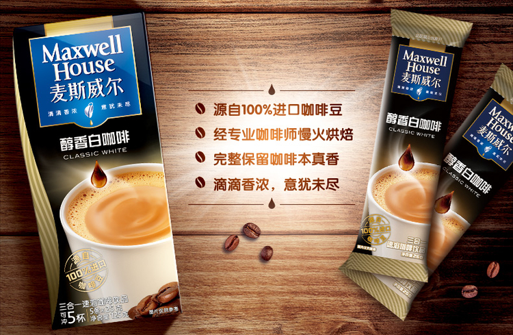 商品名称:麦斯威尔 醇香白咖啡三合一速溶咖啡5条*25g 125g/盒