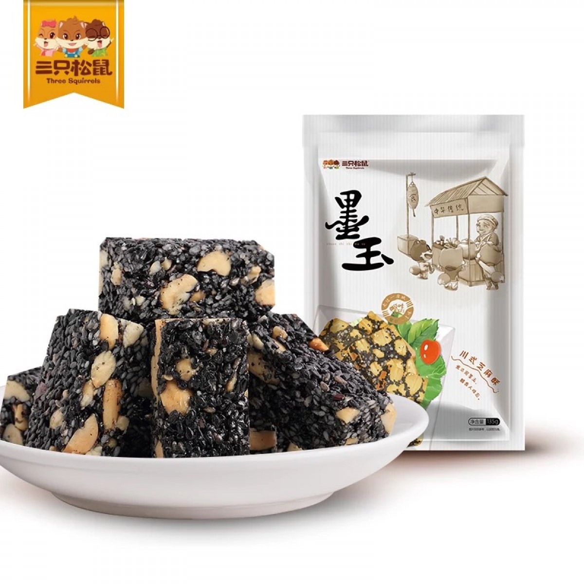 商品名称:三只松鼠 墨玉川式芝麻酥135g黑芝麻花生片芝麻糖酥无沙芝麻片零食