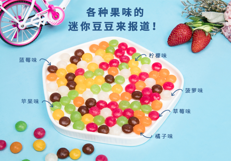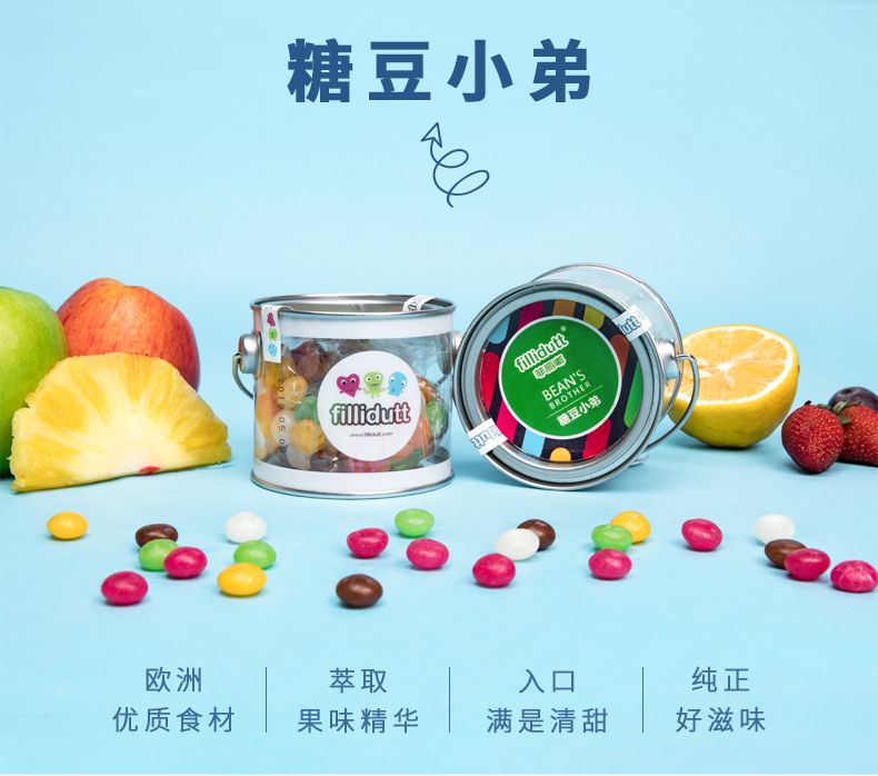 商品名称:fillidutt/菲丽嘟 迷你糖豆罐装 水果汁味软糖 儿童糖果生日礼物