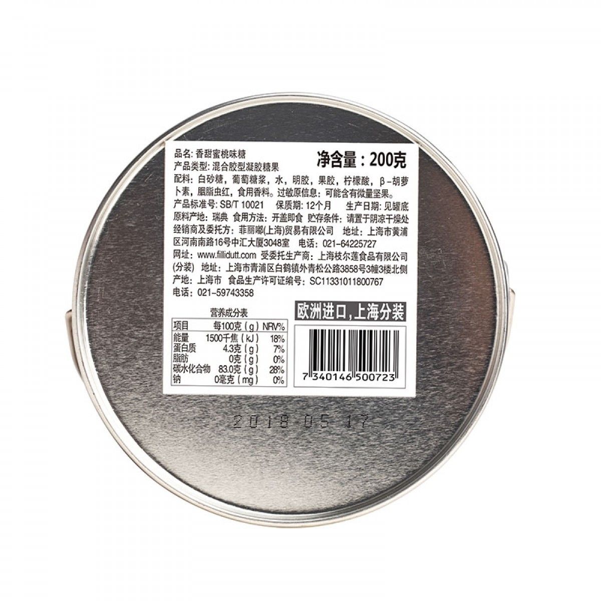 商品名称:fillidutt/菲丽嘟 香甜蜜桃味软糖果罐装 甜蜜礼物