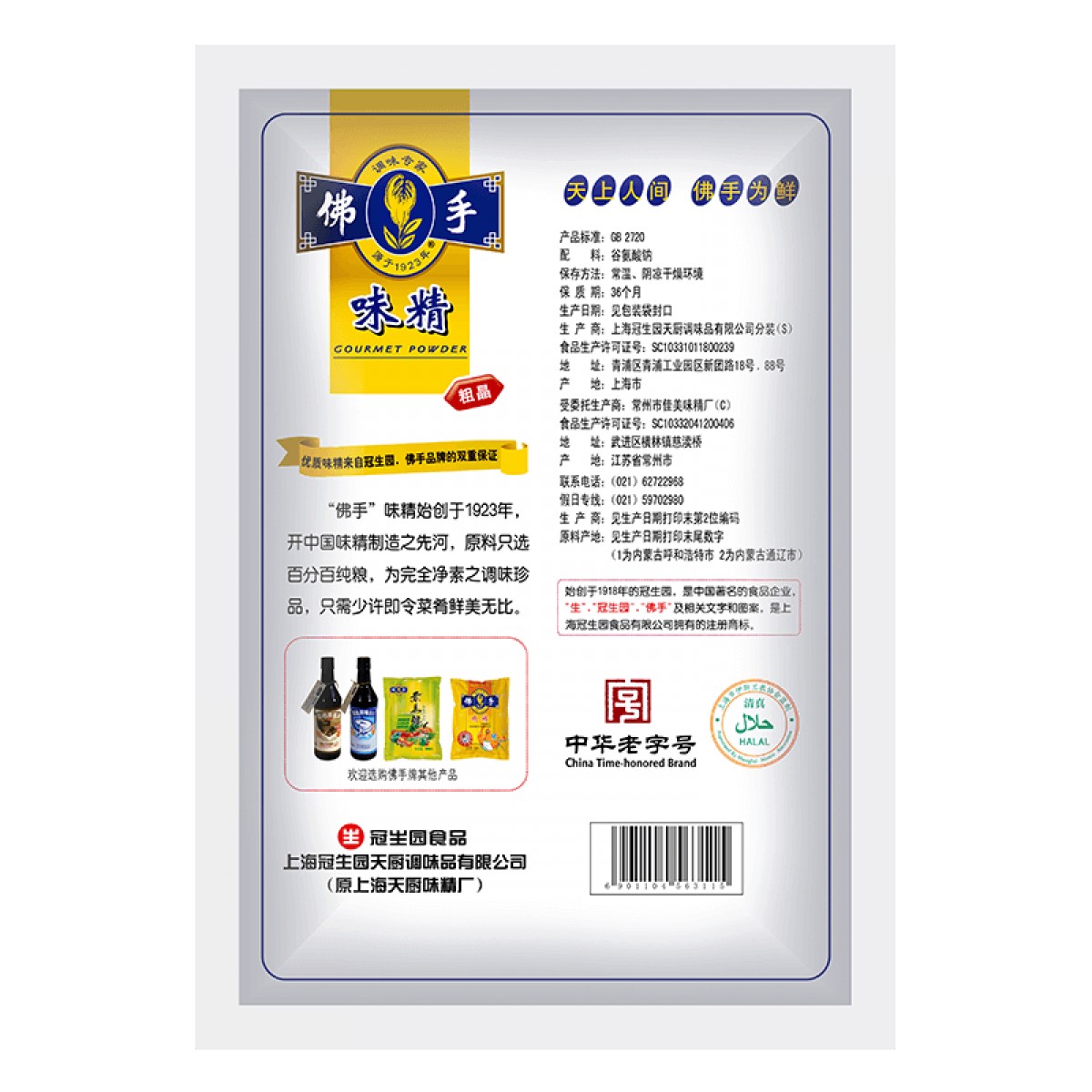 商品名称:冠生园 天厨佛手牌味精 粗晶 1000g 袋装