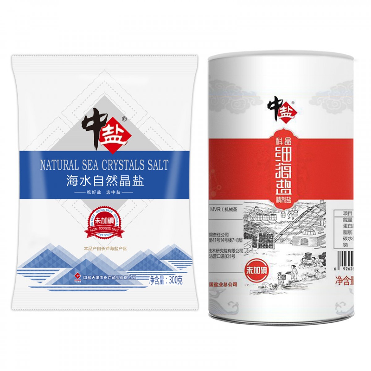 商品名称:中盐 未加碘海水自然晶×10袋+未加碘细海盐×4罐