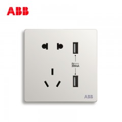 ABB 开关插座面板轩致无框雅典白色10A五孔带双USB充电二三插AF293