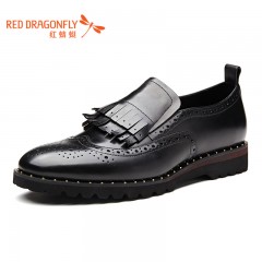 红蜻蜓 单鞋秋季新款潮流休闲男士皮鞋英伦时尚布洛克男鞋