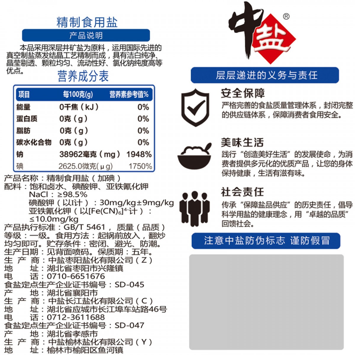商品名称:中盐 精制食用盐400g加碘盐