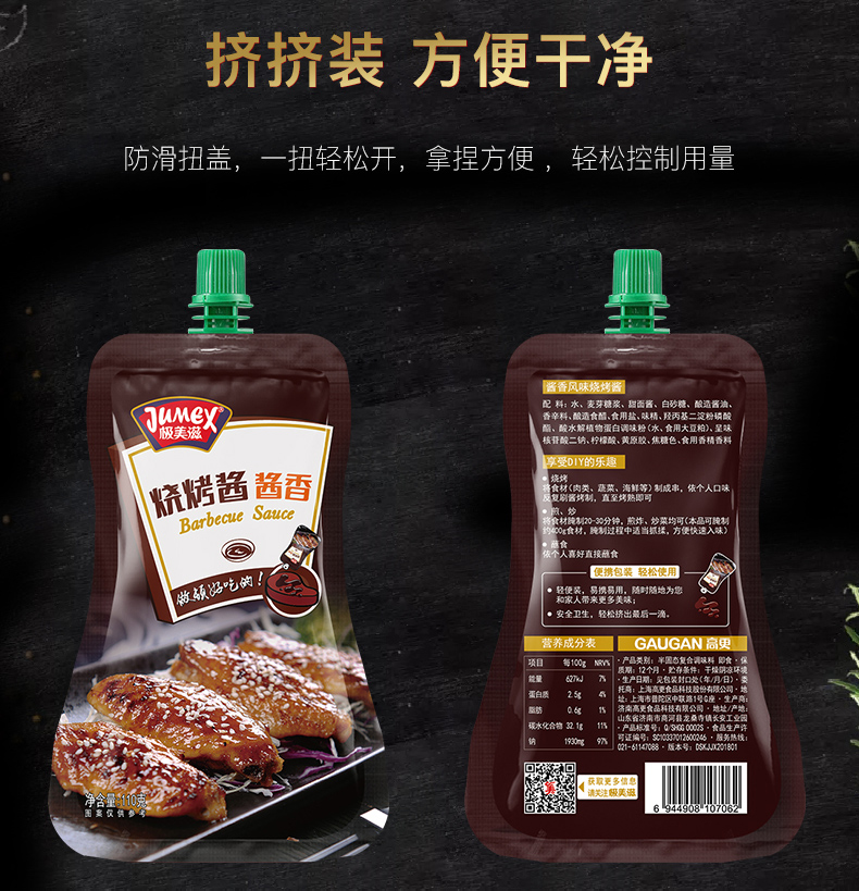商品名称:极美滋 酱香风味烧烤酱110g 不辣烤肉酱