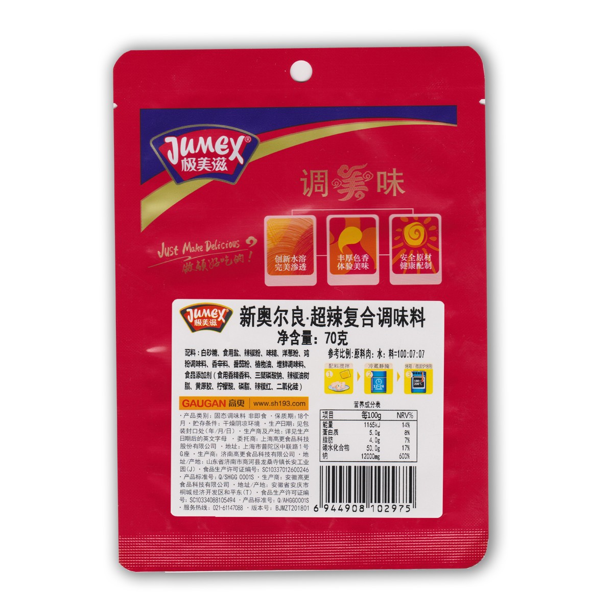 商品名称:极美滋 超辣味70g KFC新奥尔良烤鸡翅腌料