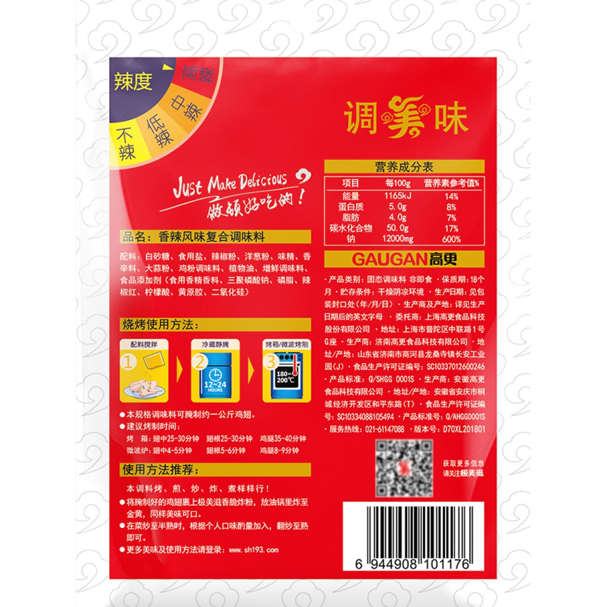 商品名称:极美滋 香辣风味复合调味料 高辣味烤肉炸鸡料烧烤粉料 70克