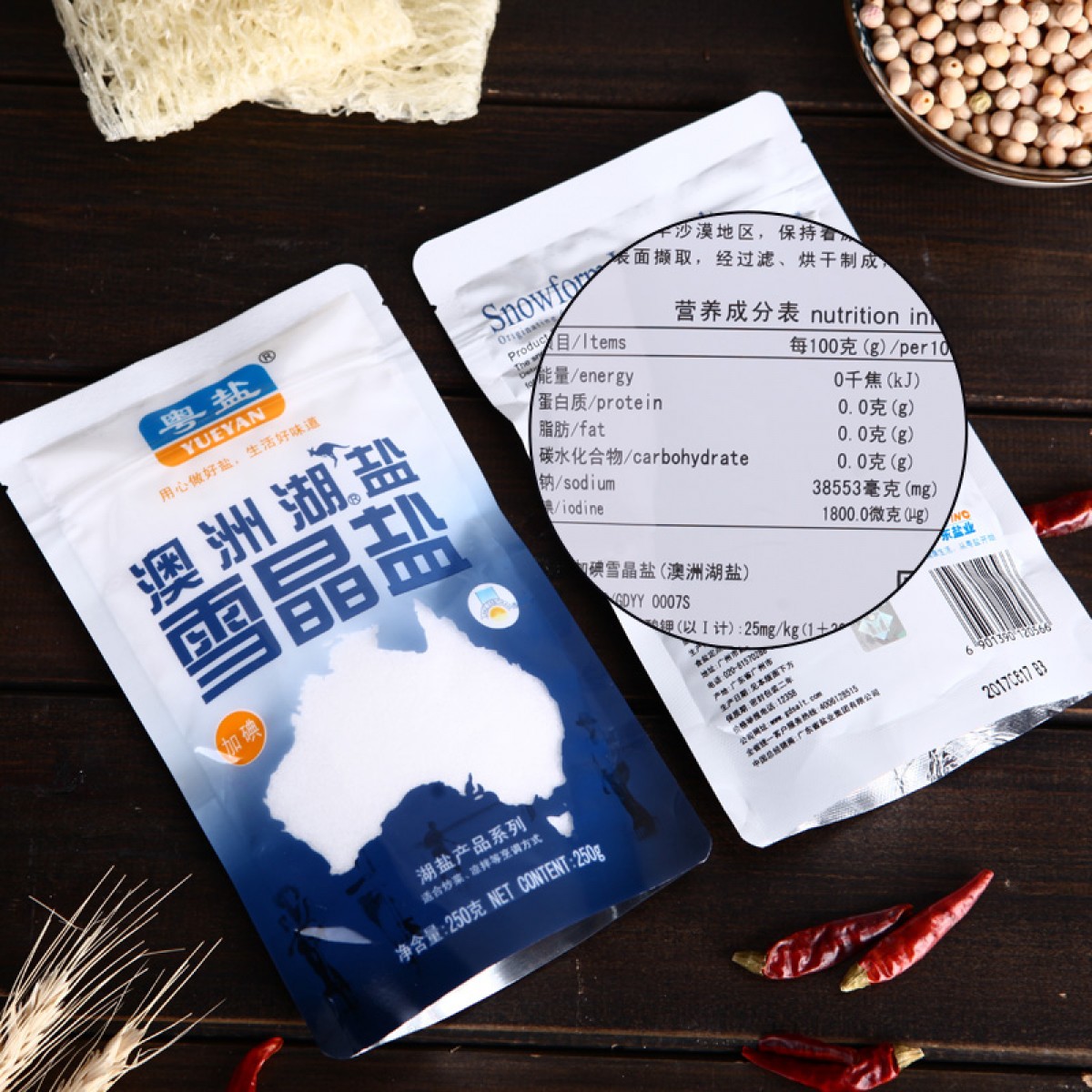 商品名称:粤盐牌 澳洲湖盐250g*4袋装加碘精制食盐加碘进口食用盐调料盐