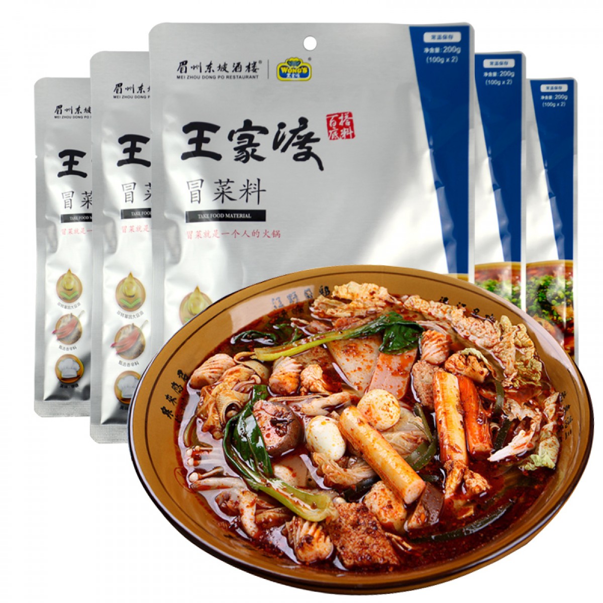 商品名称:王家渡 冒菜底料200g×5袋 四川火锅麻辣烫麻辣冒菜底料调料香辣