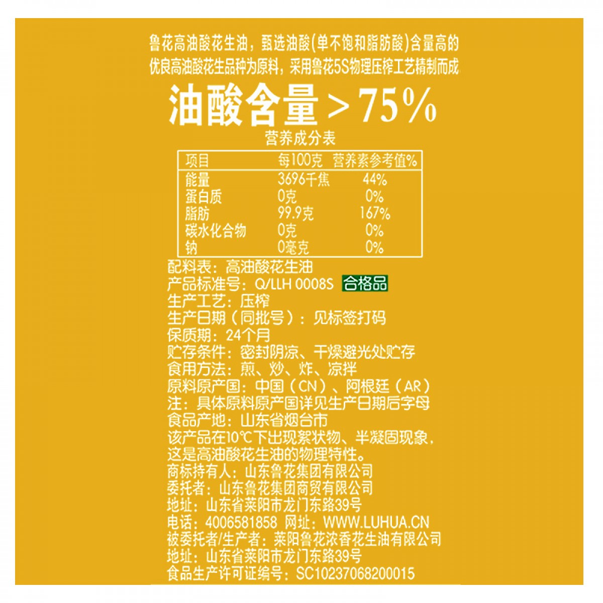 商品名称:鲁花 高油酸花生油 750ml*2礼盒