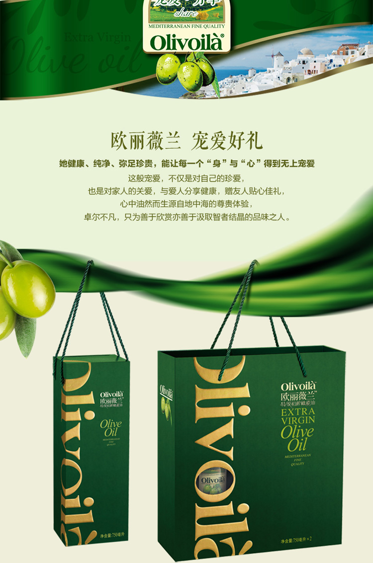 商品名称:欧丽薇兰 特级初榨橄榄油精装礼盒750ml*2
