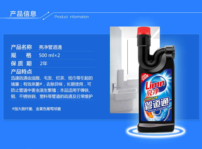商品名称:亮净 管道通500ml下水道卫生间厨房管道疏通剂