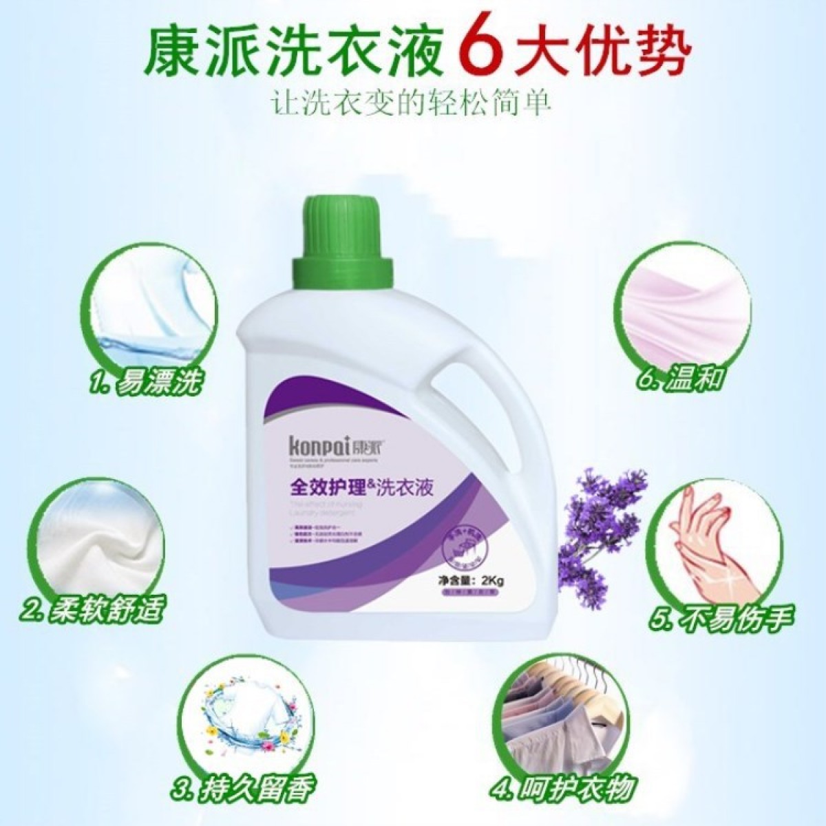 商品名称:康派 全效护理洗衣液 2kg瓶装 怡神薰衣草低泡易漂不含荧光增白剂
