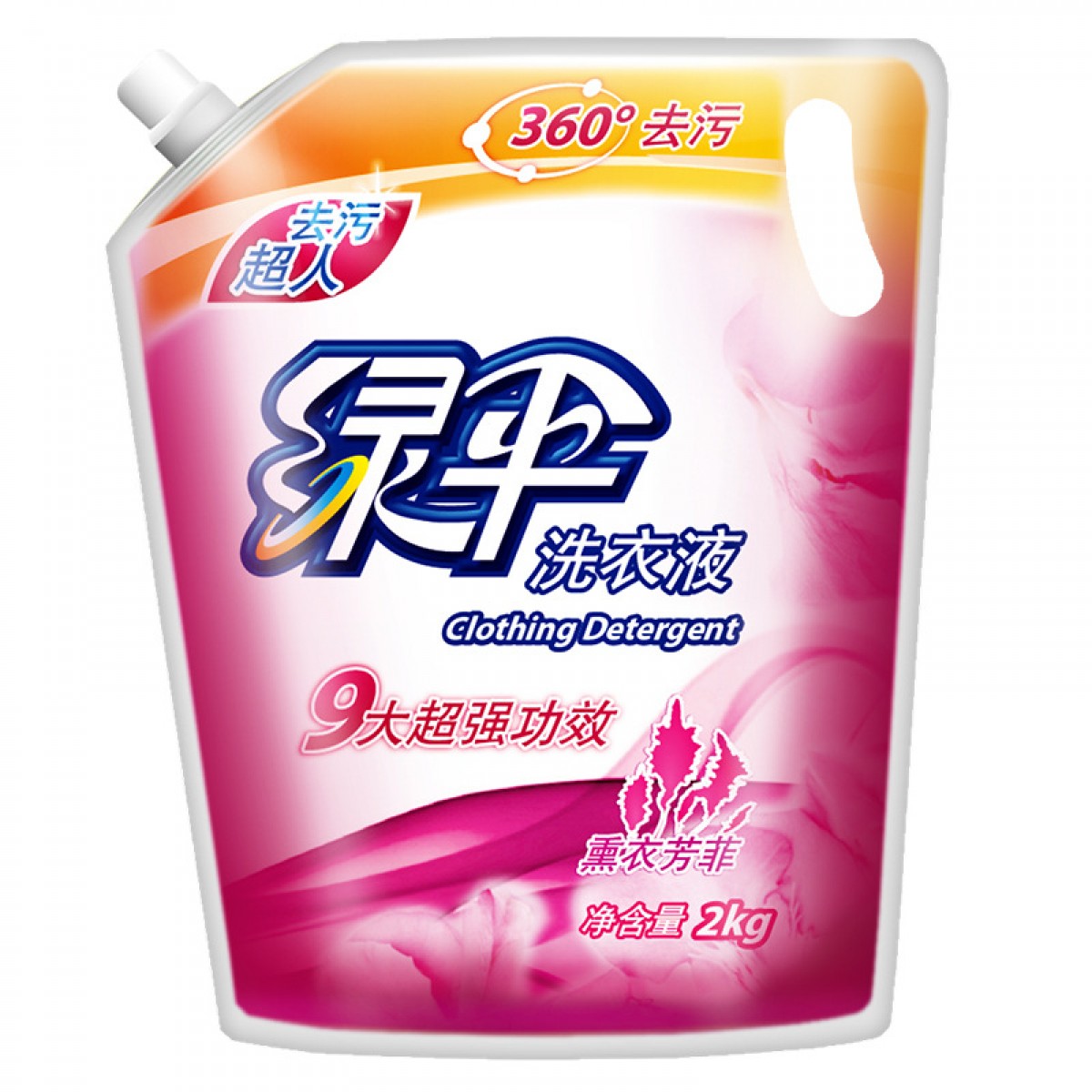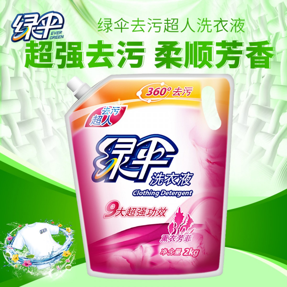 商品名称:绿伞 去污超人洗衣液2kg袋装 深层洁净护色薰衣草香洗衣液