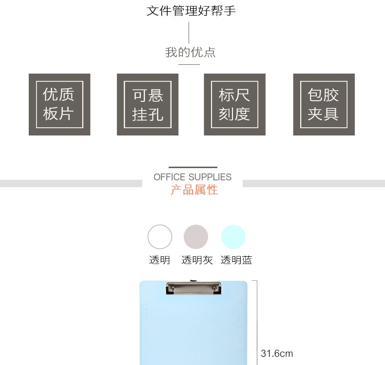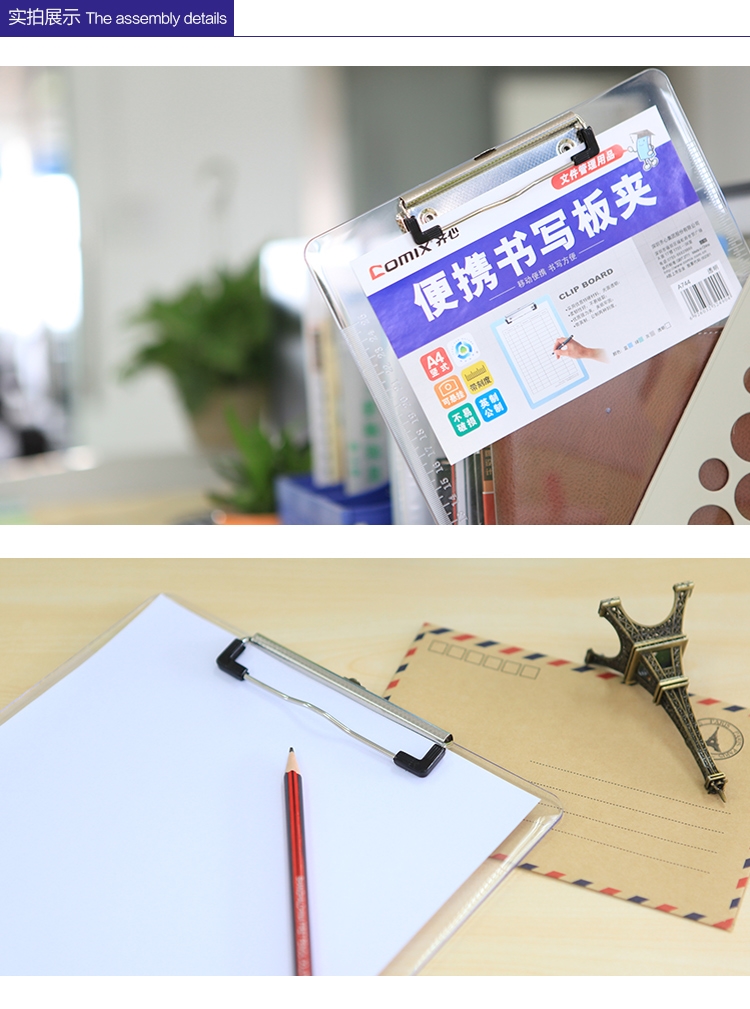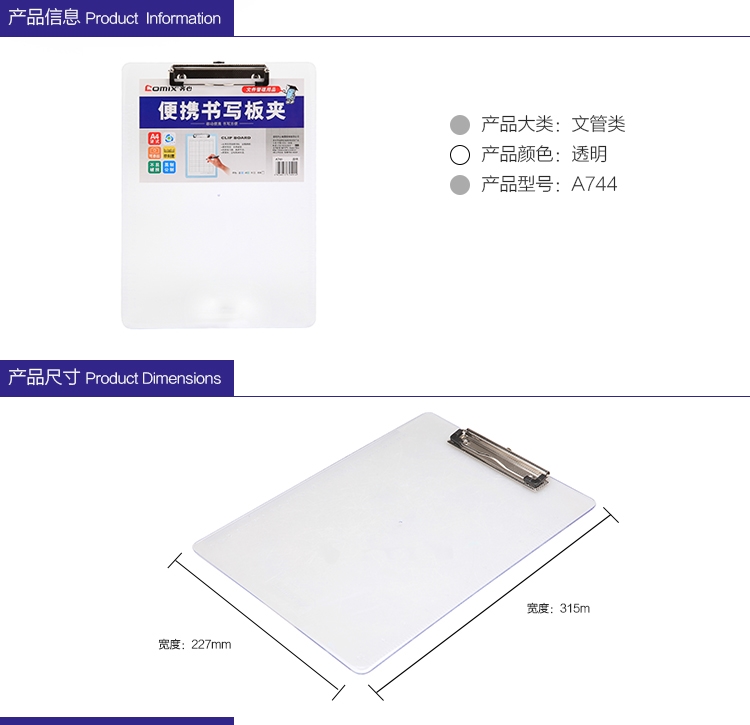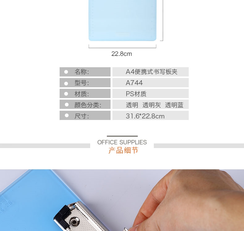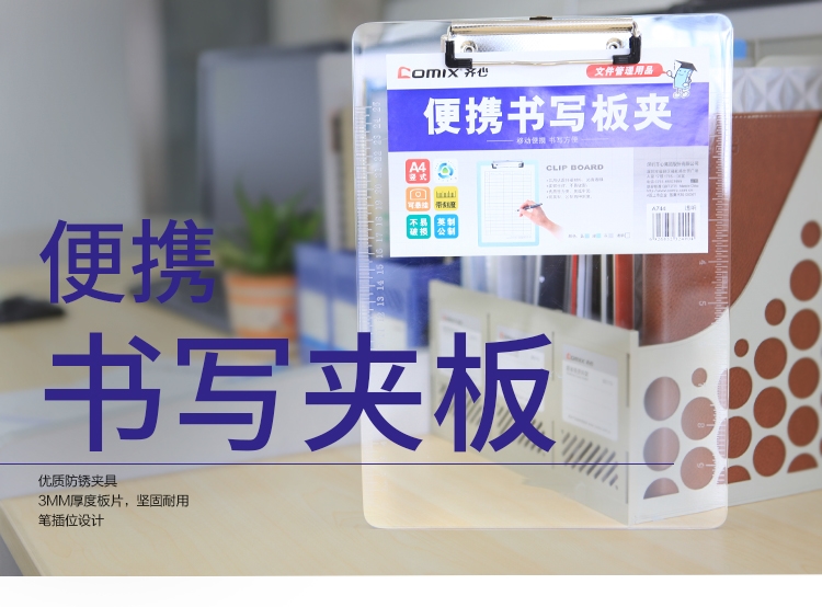 商品名称:齐心 便携式书写板夹A4文件板夹记事写字板夹垫板文件夹板 A744