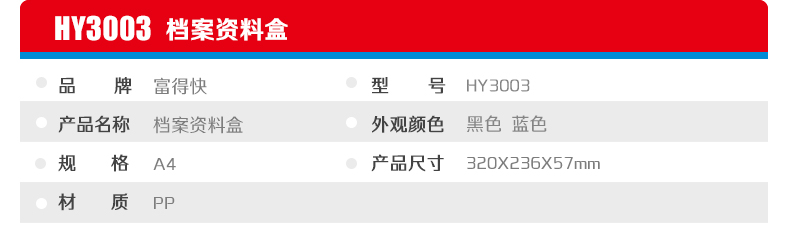商品名称:富得快 档案盒HY3003 粘扣塑料档案盒 55mm 3寸资料盒