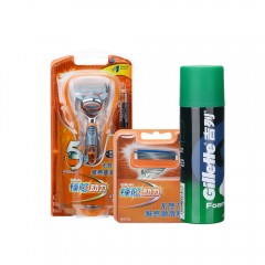 吉列 锋隐动力剃须刀架含5刀片+刮胡泡沫膏210g 电池电动五层