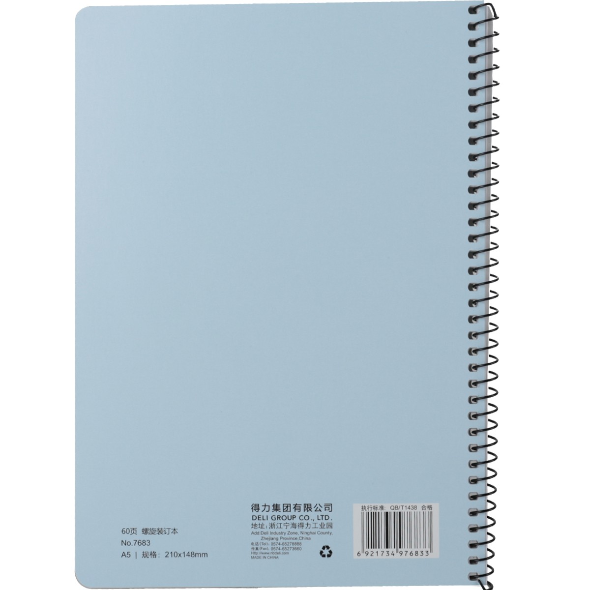 商品名称:得力 7683螺旋笔记本A5书写记录本子60页学生课堂本记事本