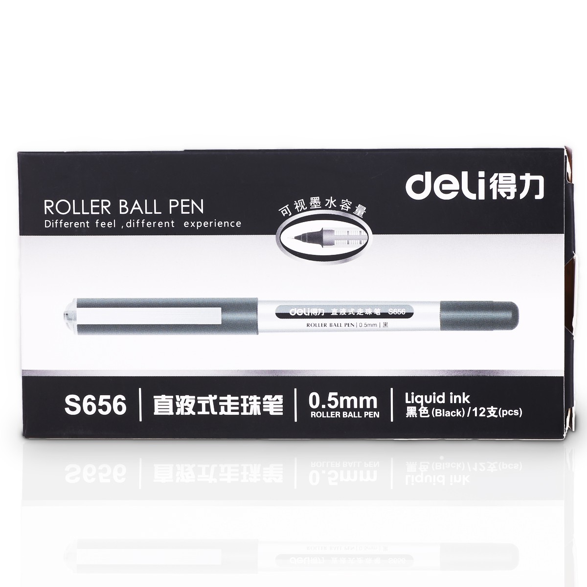 得力 S656中性笔 直液式签字笔 0.5mm黑色水笔 学生办公水性笔