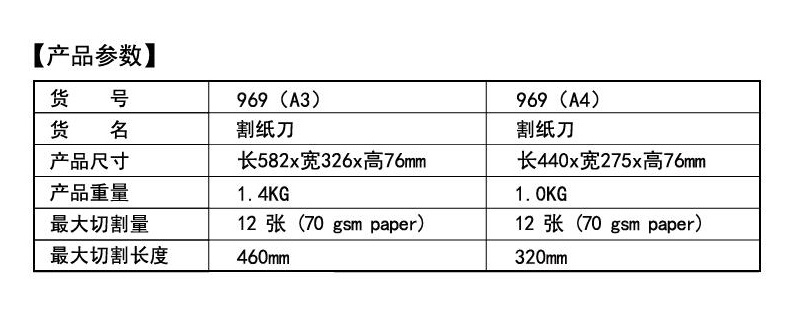 商品名称:杰丽斯 安全型切纸机 A4A3切纸刀 969