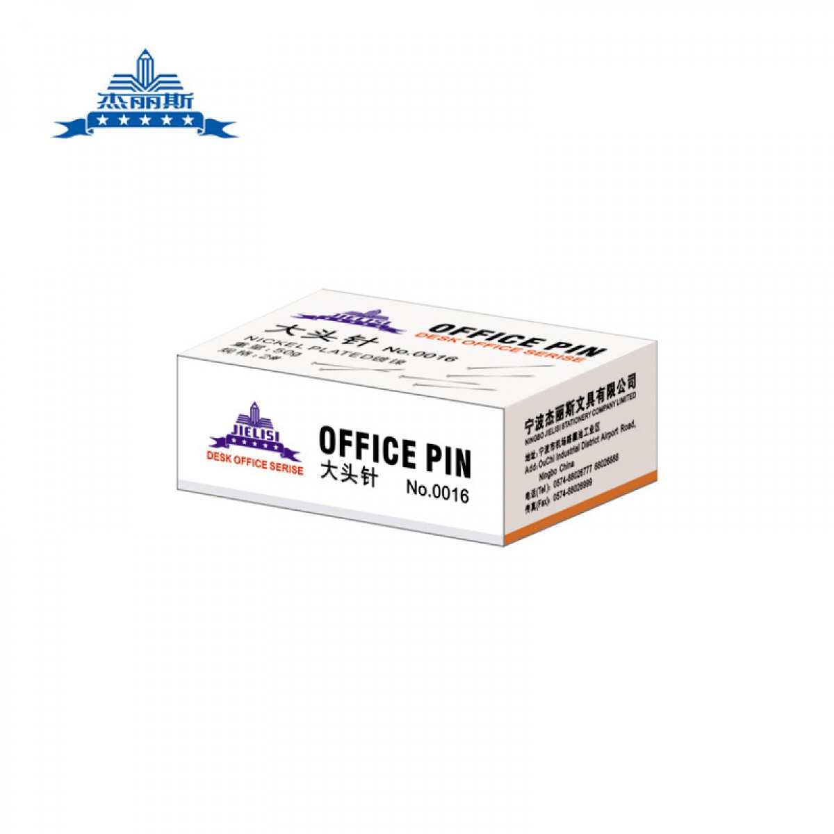 商品名称:杰丽斯 银色大头针0016 金属大头针 简装纸盒50克装
